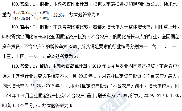 109. 表格中的14大行業(yè)中,有幾個(gè)行業(yè)2019年1-4月固定資產(chǎn)投資(不含農(nóng)戶(hù))占全國(guó)固定資產(chǎn)投資(不含農(nóng)戶(hù))的比重比去年同期高?( )