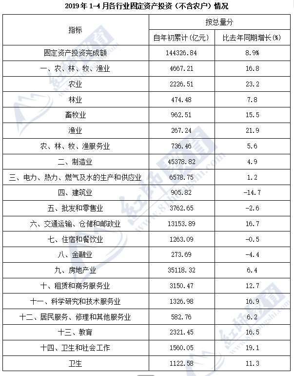 110. 2018年1-4月農(nóng)、林、牧、漁業(yè)行業(yè)中固定資產(chǎn)投資(不含農(nóng)戶(hù))最大行業(yè)在2019年1-