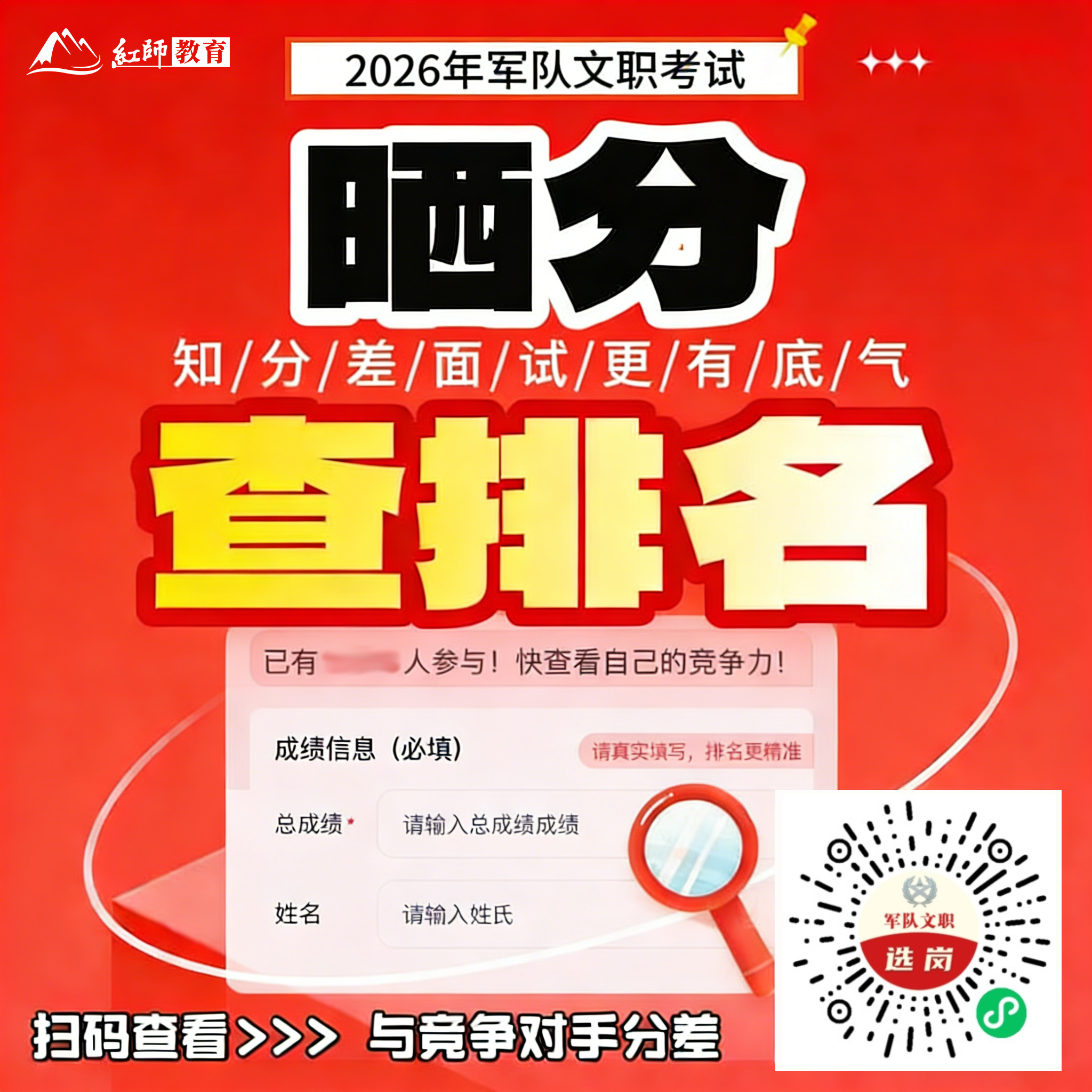 預(yù)祝2026軍隊(duì)文職考生順利入圍,成功上岸!后續(xù)面試最新資訊、崗位備考資料將持續(xù)更新,敬請(qǐng)關(guān)注!