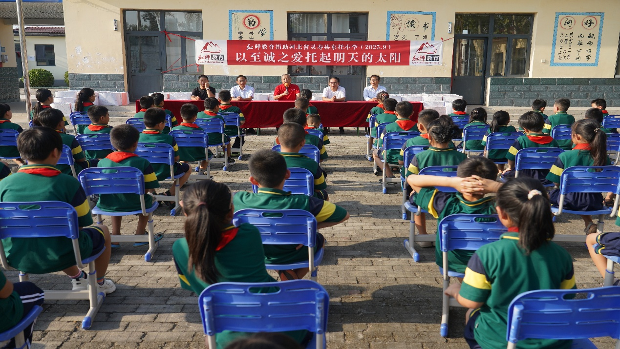 在本次捐助儀式上,靈壽縣委副書記苑志杰在致辭中深情地說道:“紅師教育不僅是一家優(yōu)秀的企業(yè),更是一個有溫度、有擔(dān)當(dāng)?shù)墓婊锇?。你們帶來的不僅是書包和文具,更是對孩子們未來的真誠期許和對鄉(xiāng)村教育的堅(jiān)實(shí)支持。在此,我代表靈壽縣委、縣政府和受贈學(xué)校,向紅師教育表示最衷心的感謝!”