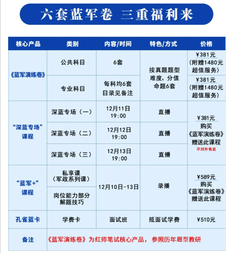 這些附贈(zèng)的產(chǎn)品是購(gòu)買正版《藍(lán)軍演練卷》的考生才有的專屬福利,只有搭配這些配套的課程,才能最大程度地發(fā)揮出《藍(lán)軍演練卷》的效果。