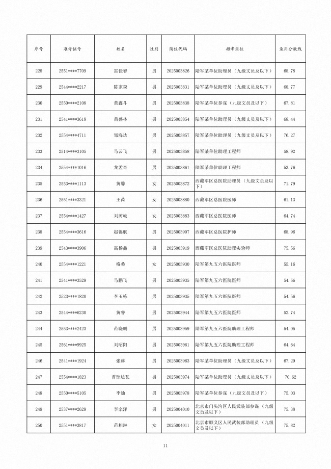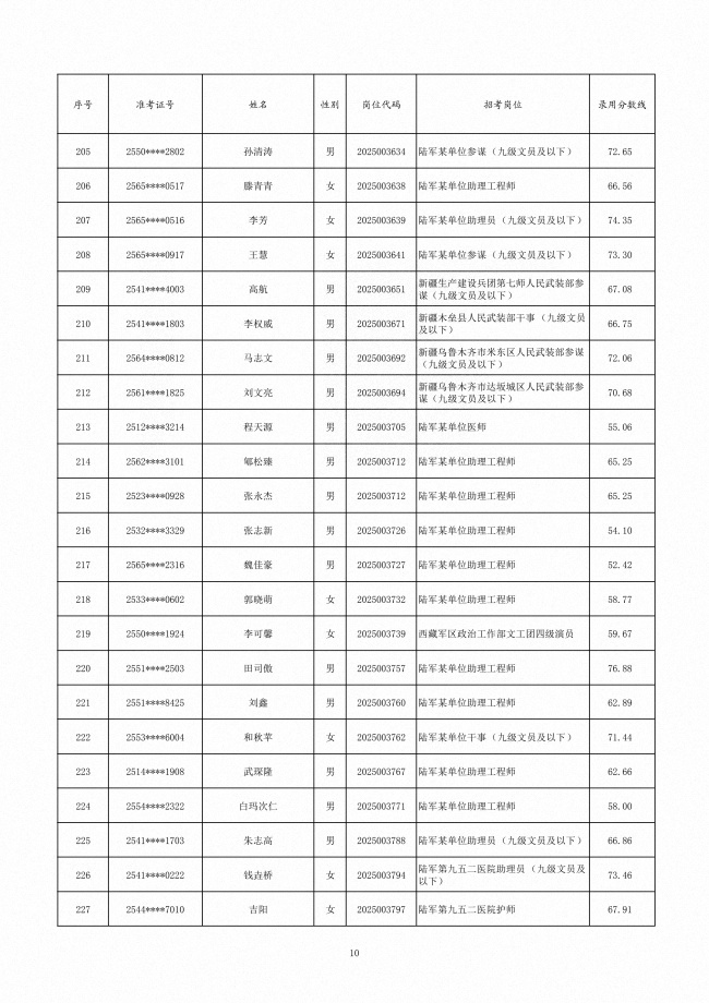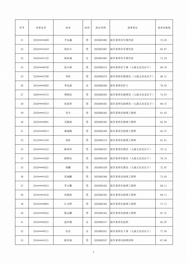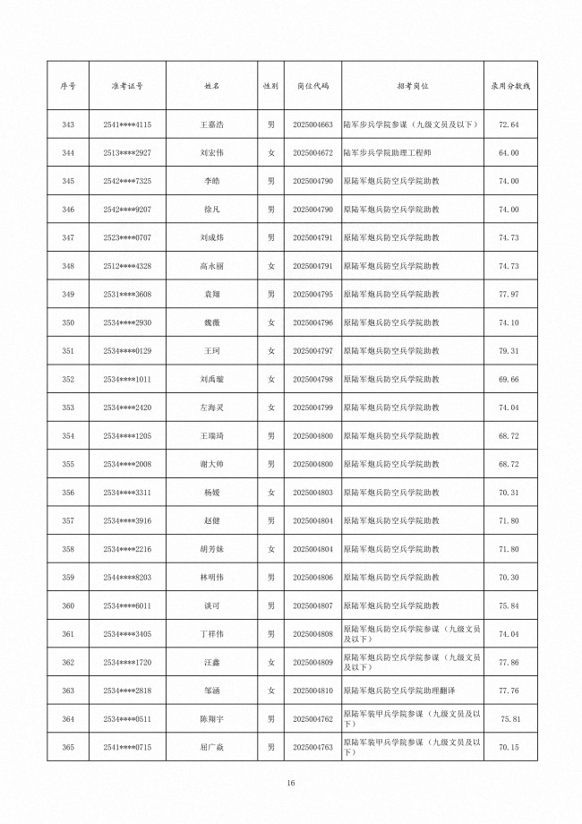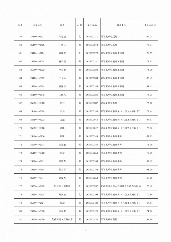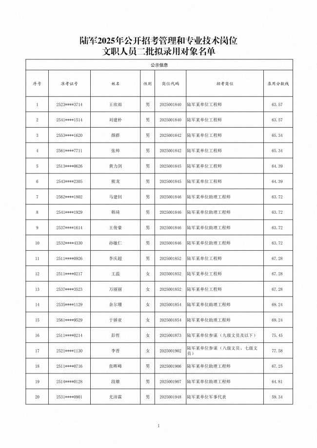 原文標(biāo)題:公示陸軍2025年公開招考管理和專業(yè)技術(shù)崗位文職人員第二批擬錄用對(duì)象名單