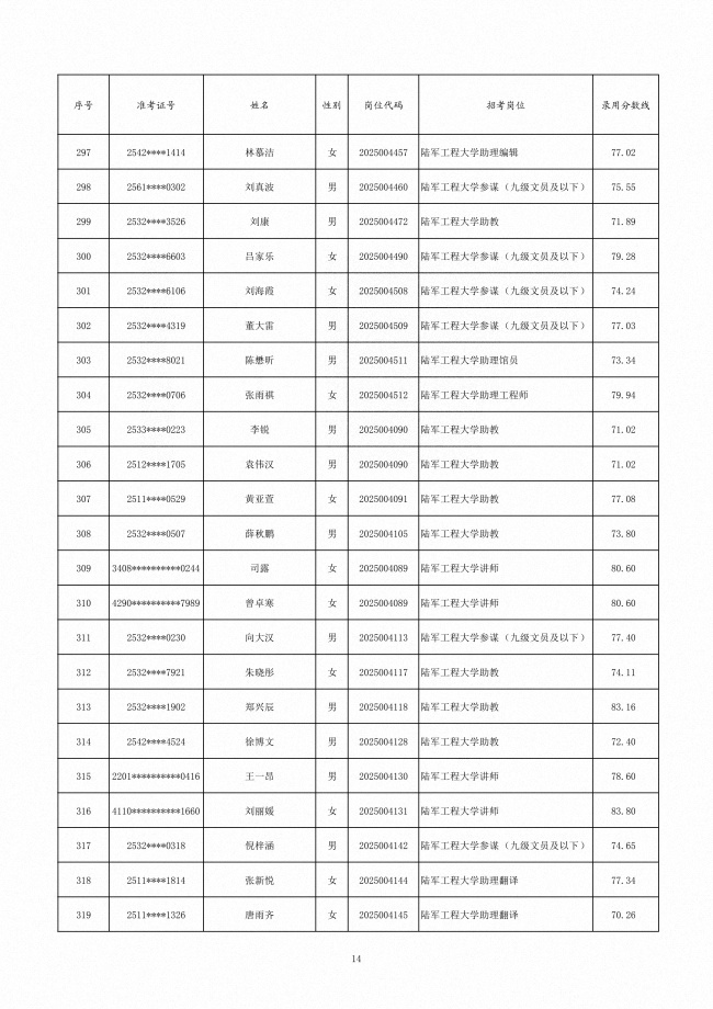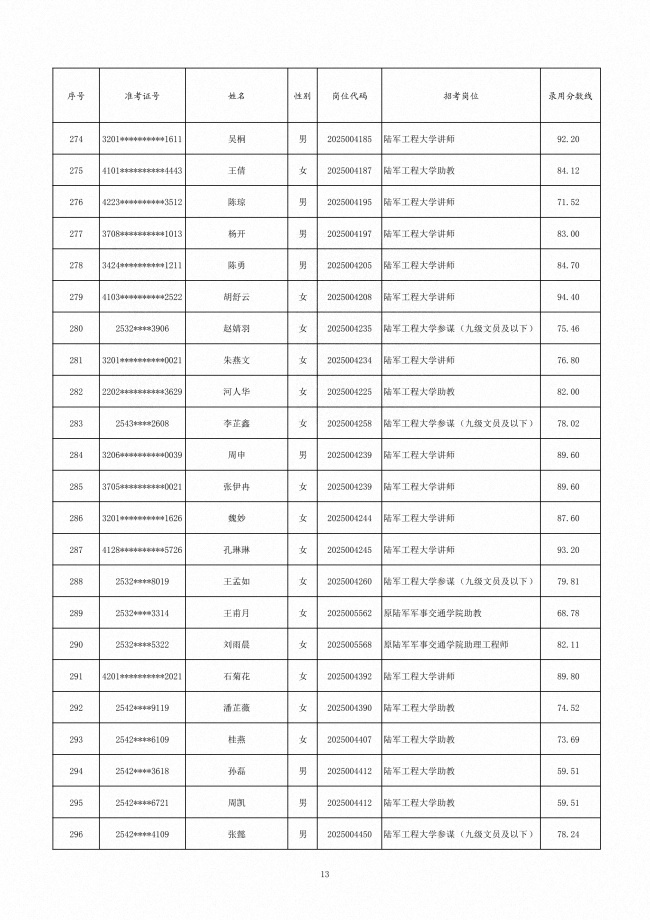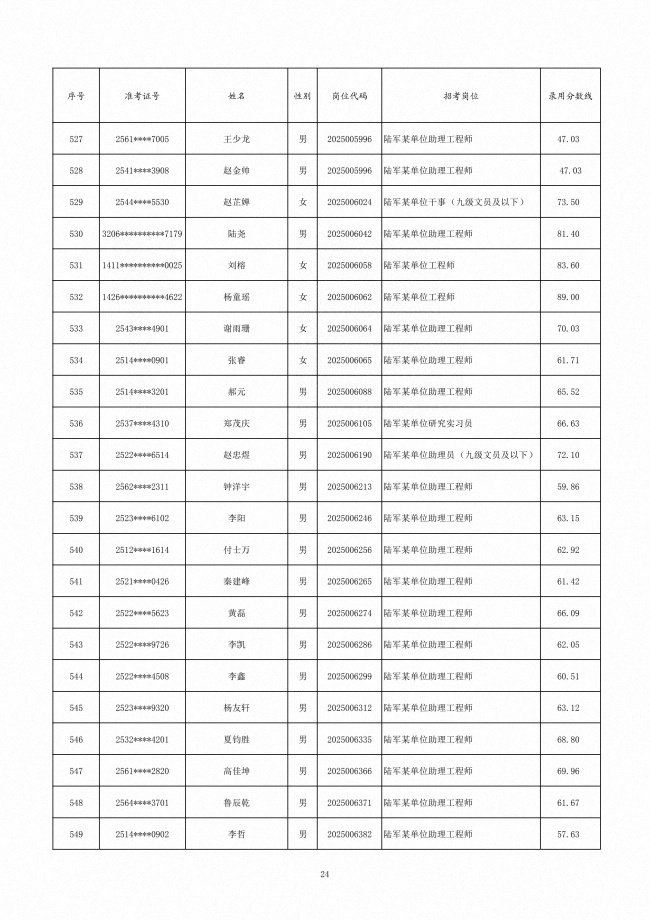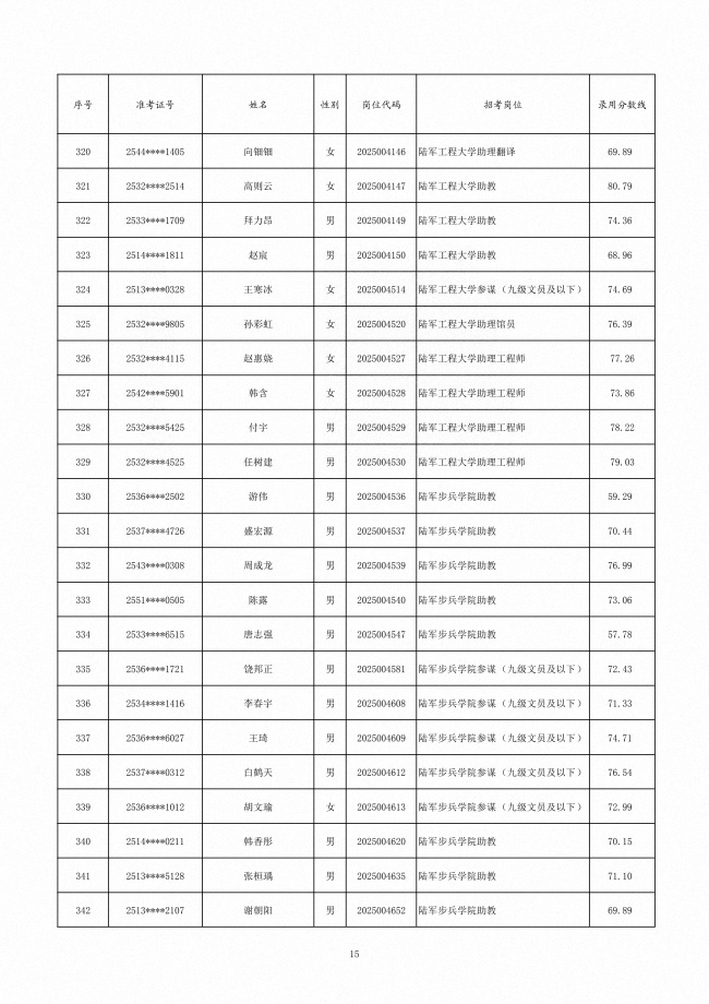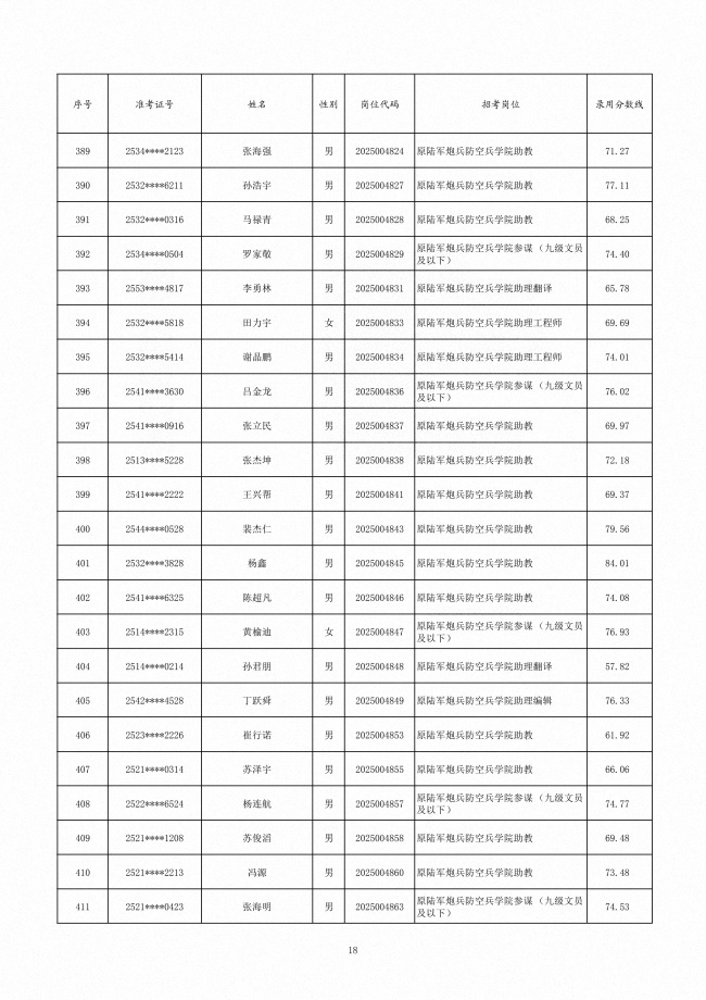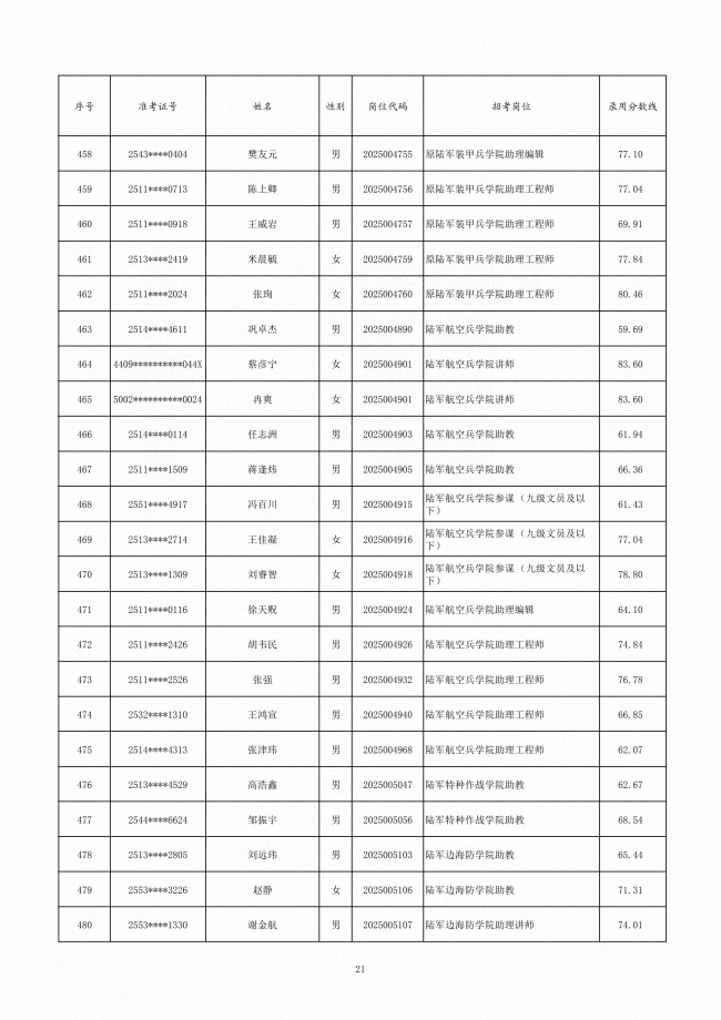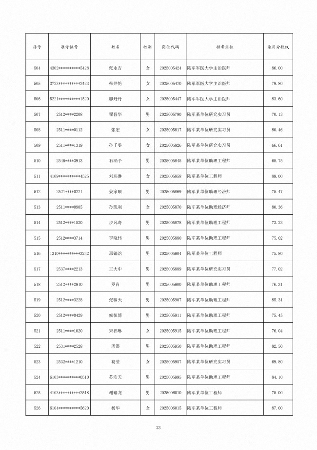 原文標(biāo)題:公示陸軍2025年公開招考管理和專業(yè)技術(shù)崗位文職人員第二批擬錄用對(duì)象名單