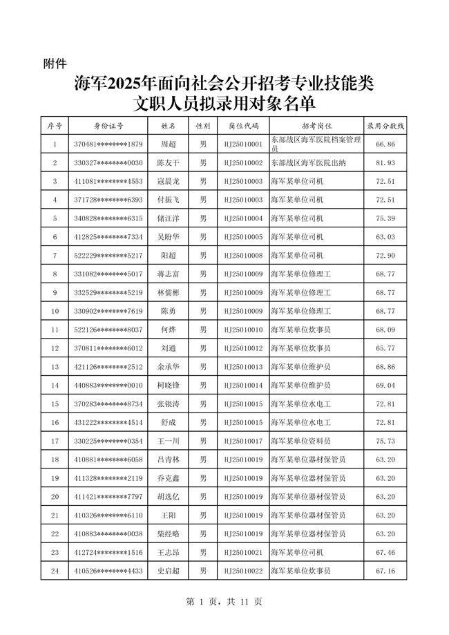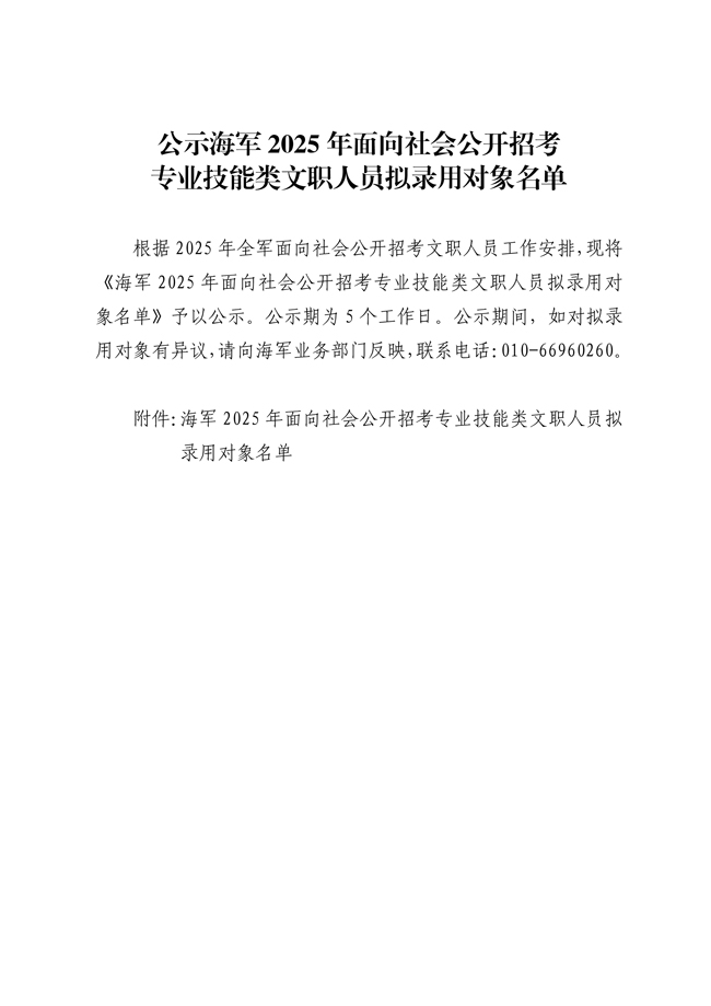 原文標(biāo)題:公示海軍2025年面向社會(huì)公開招考專業(yè)技能類文職人員擬錄用對(duì)象名單