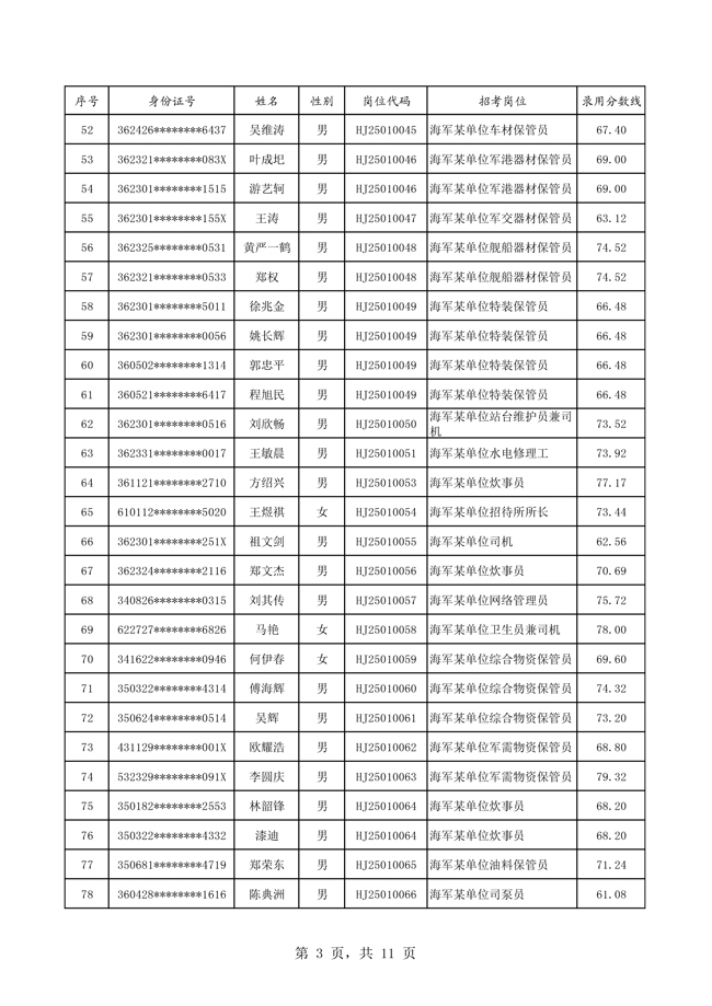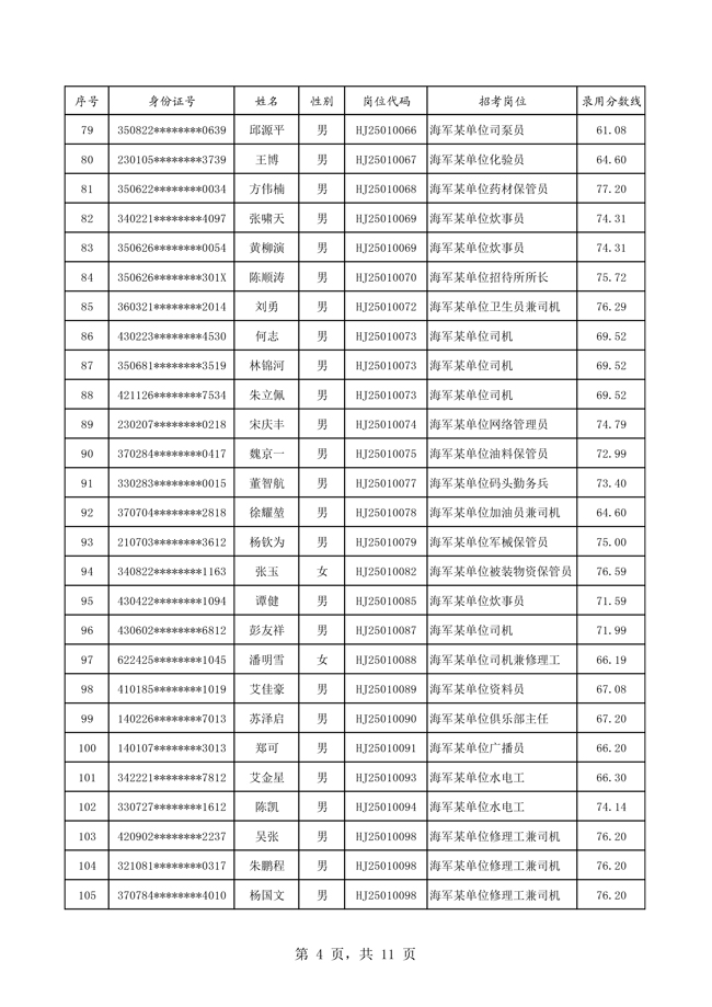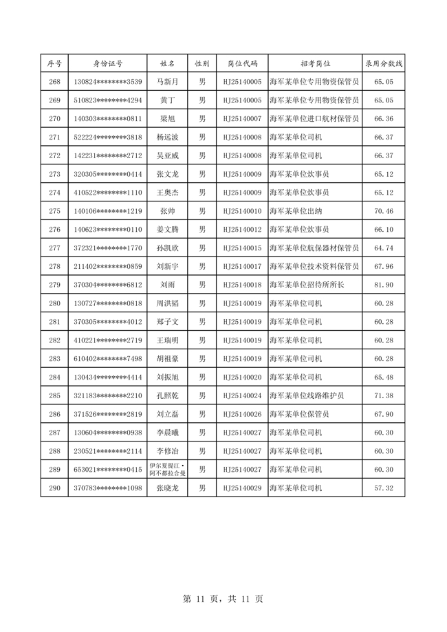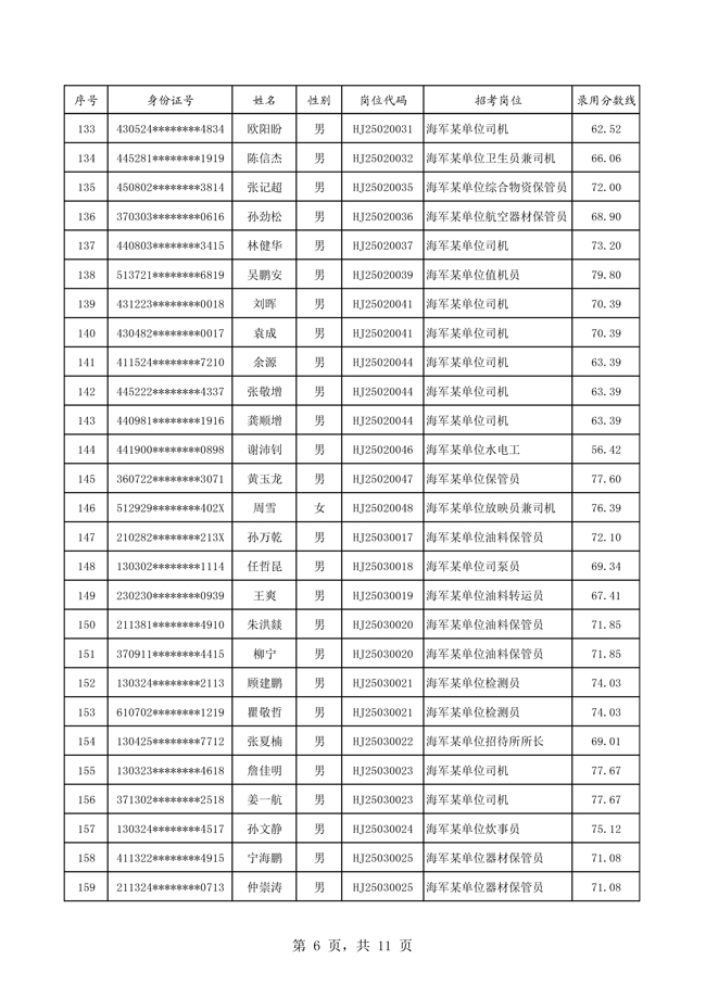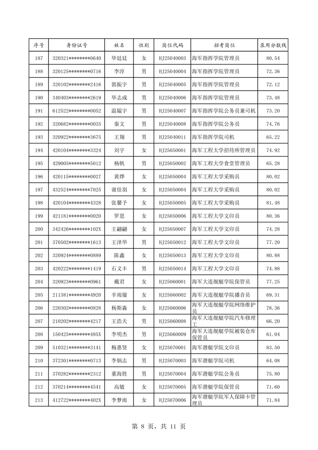 2025年武裝部文職人員擬錄用名單(含上岸分?jǐn)?shù)線) 2025-10-09