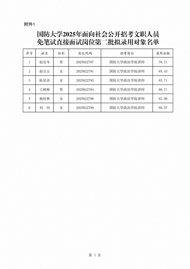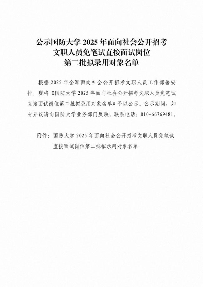 原文標(biāo)題:公示國防大學(xué)2025年面向社會公開招考文職人員免筆試直接面試崗位第二批擬錄用對象名單