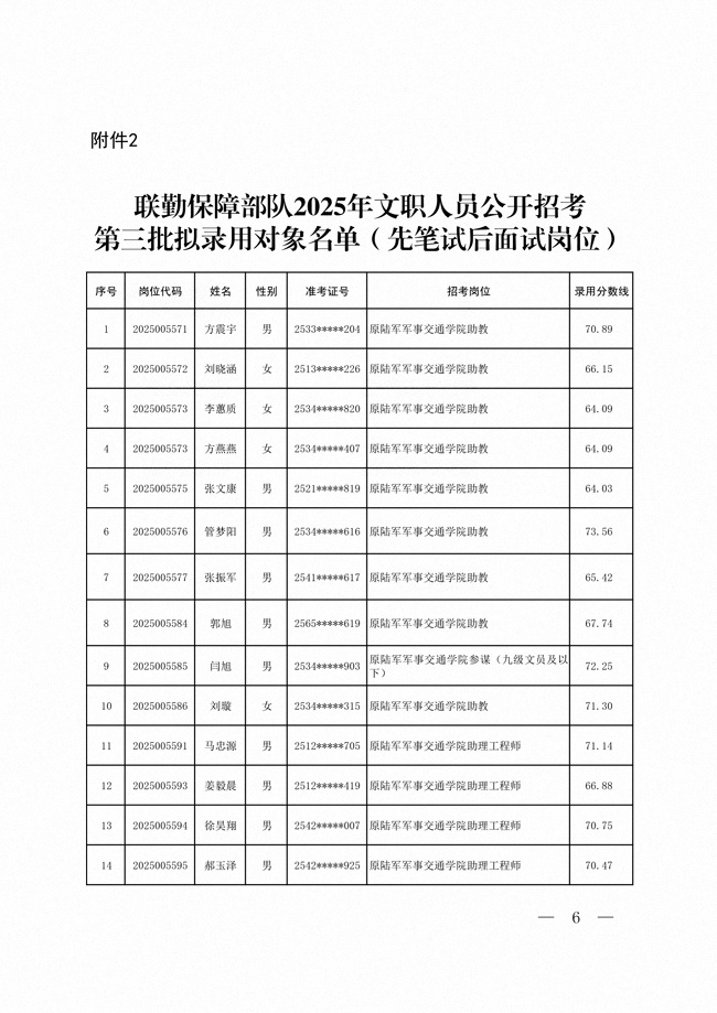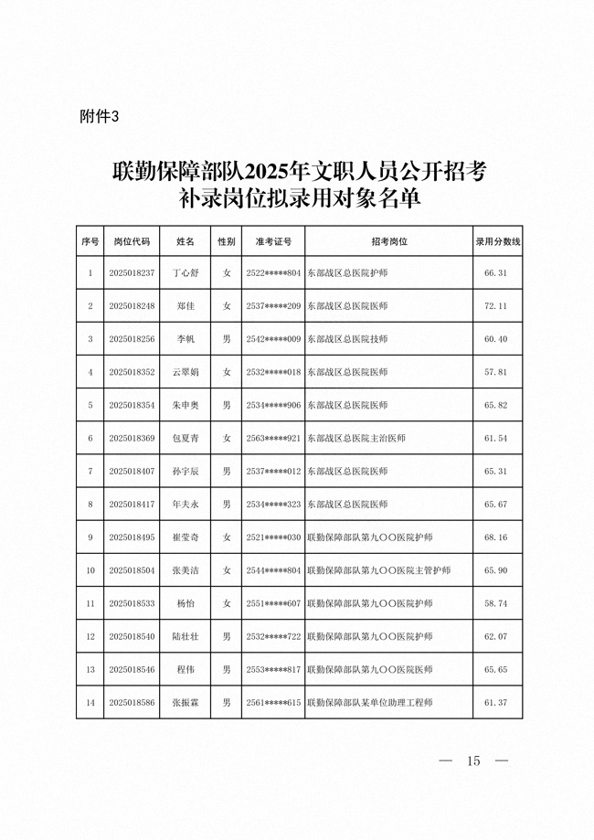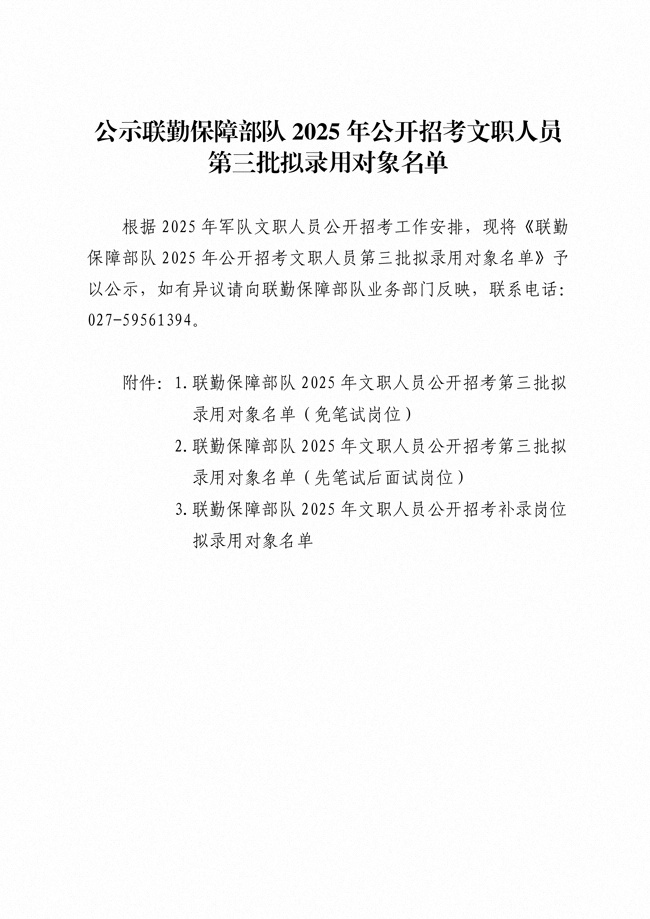 原文標題:公示聯(lián)勤保障部隊2025年公開招考文職人員第三批擬錄用對象名單