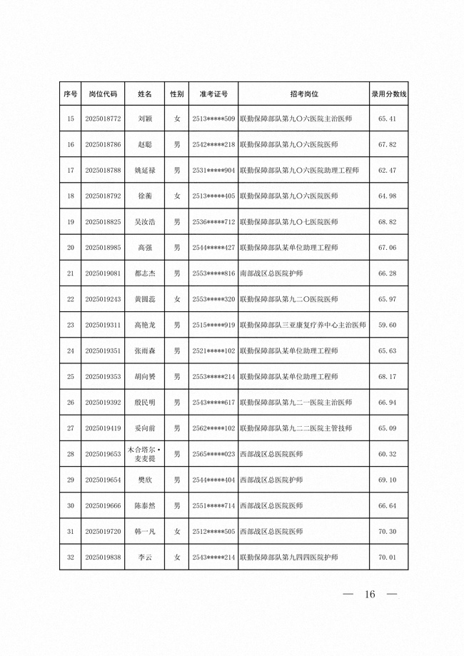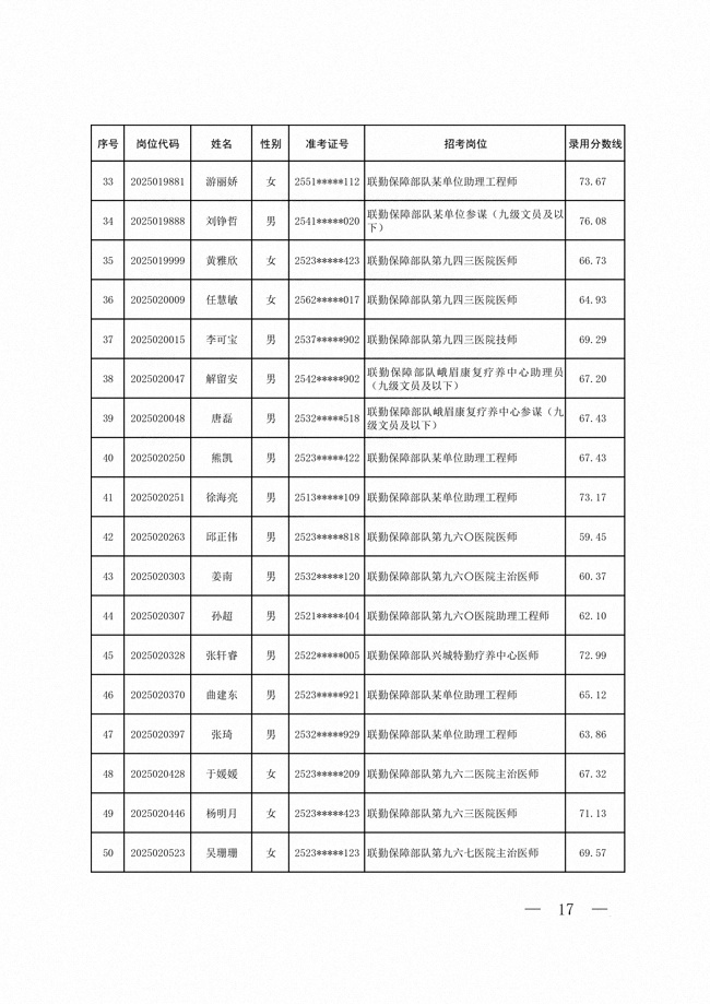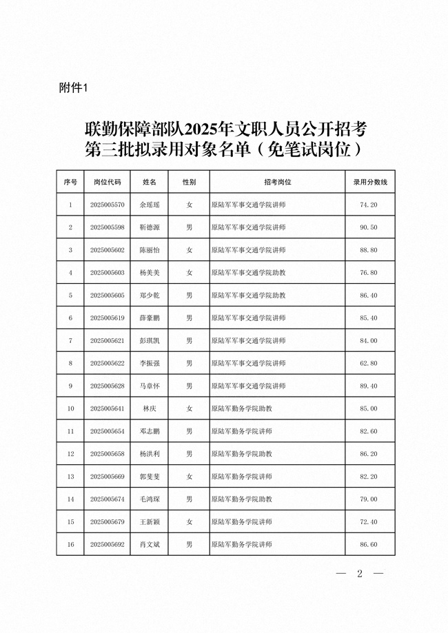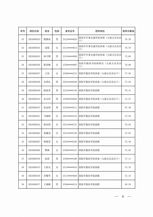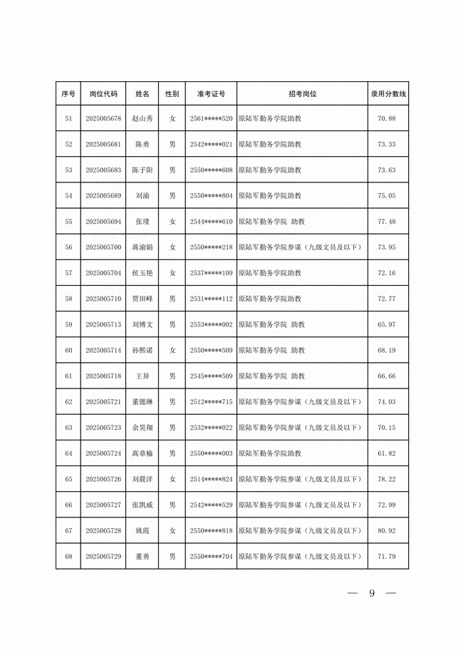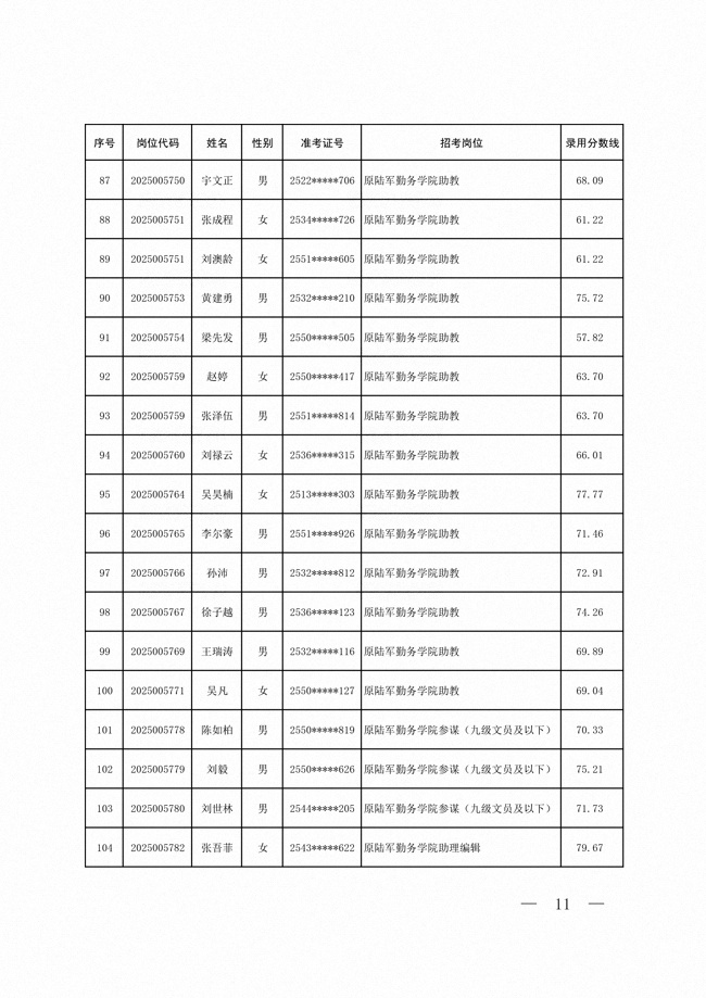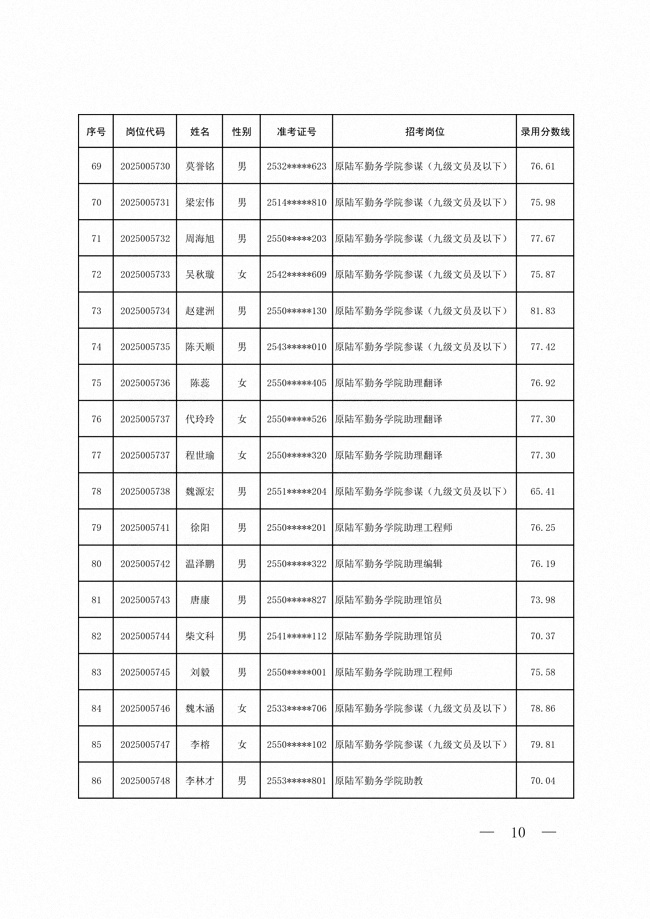 2025年武裝部文職人員擬錄用名單(含上岸分數(shù)線) 2025-10-09