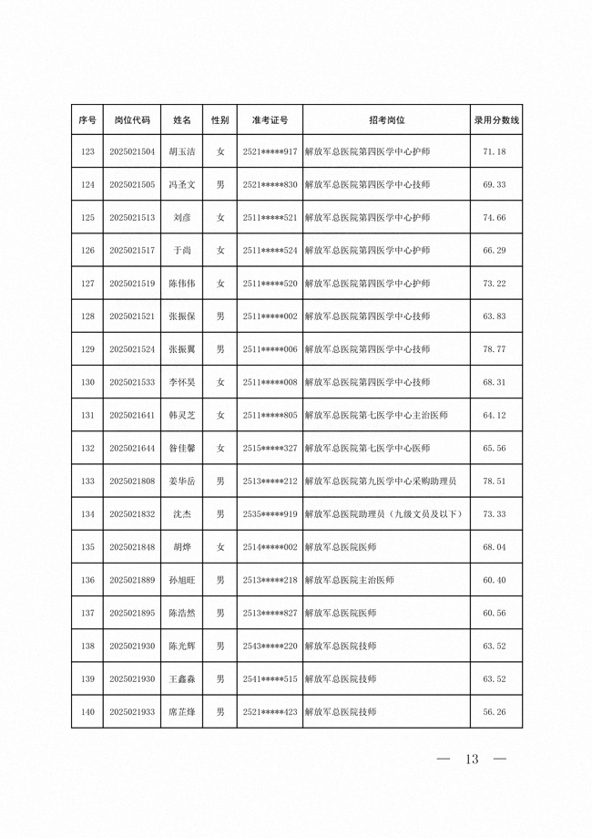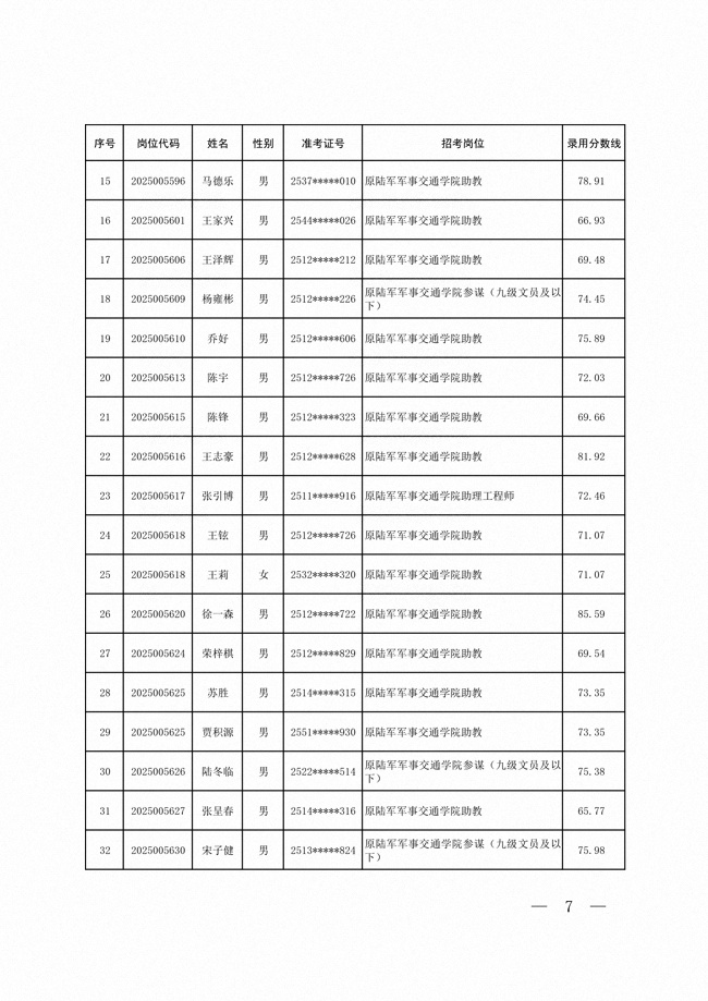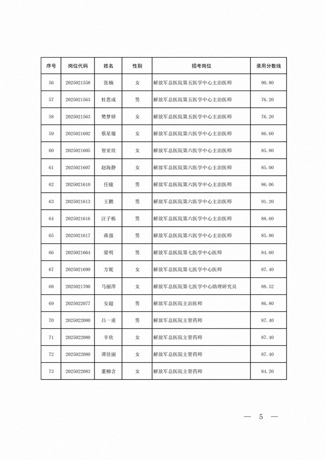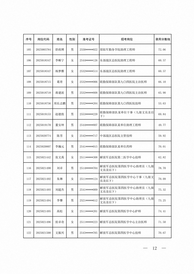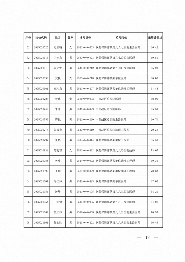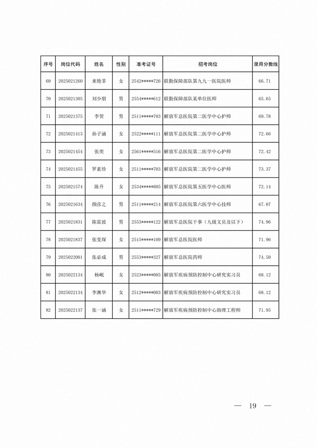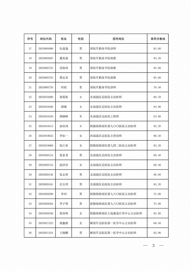 2025年武裝部文職人員擬錄用名單(含上岸分數(shù)線) 2025-10-09