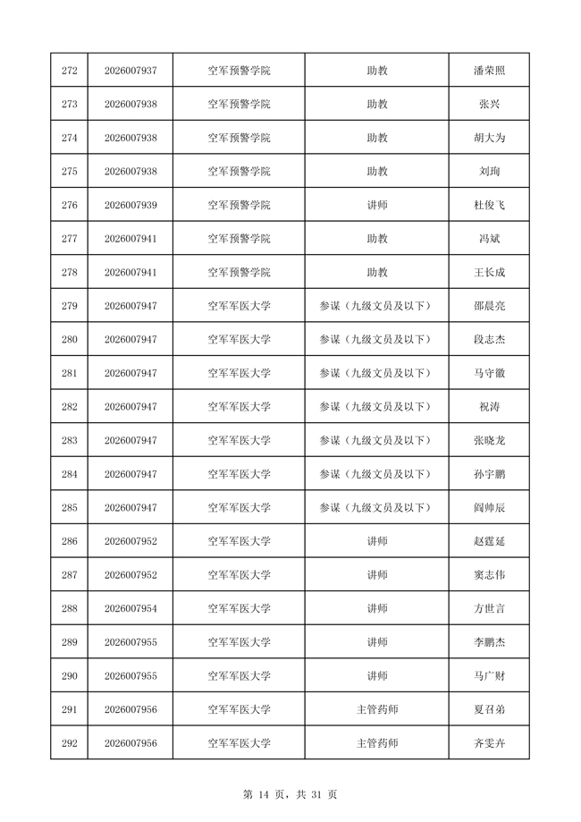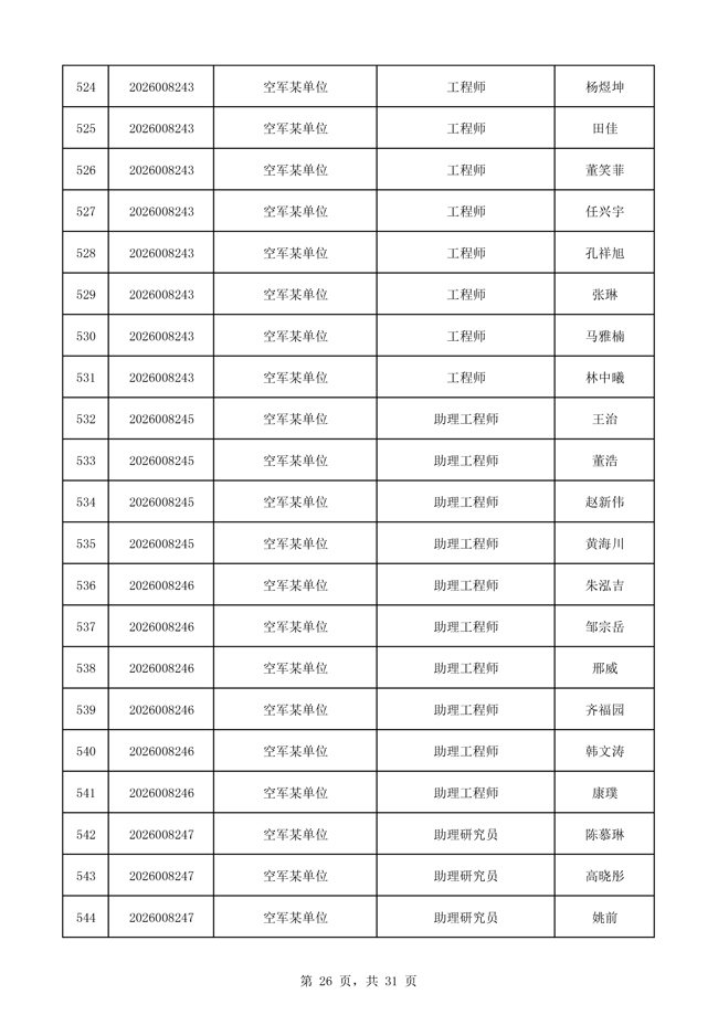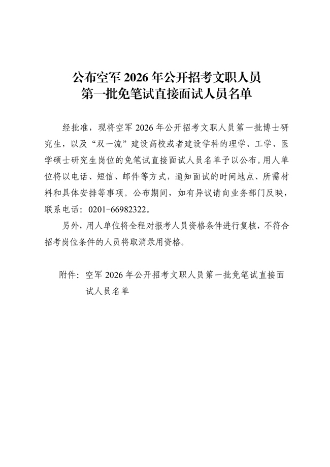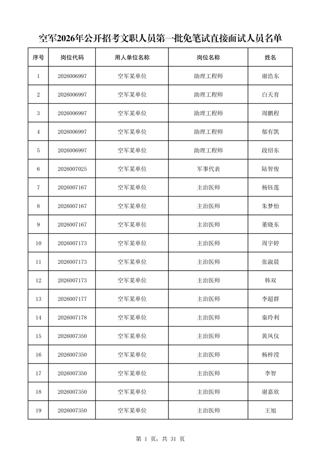 原文標(biāo)題:公布空軍2026年公開招考文職人員 第一批免筆試直接面試人員名單