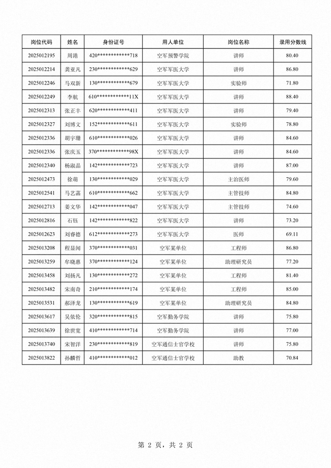 原文標(biāo)題:公示2025年空軍文職人員公開招考第三批、直接引進(jìn)第二批擬錄用對(duì)象名單