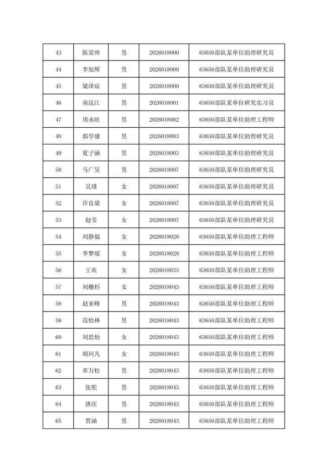 原文標(biāo)題:公布63650部隊(duì)2026年公開招考文職人員第一批免筆試直接參加面試人員名單