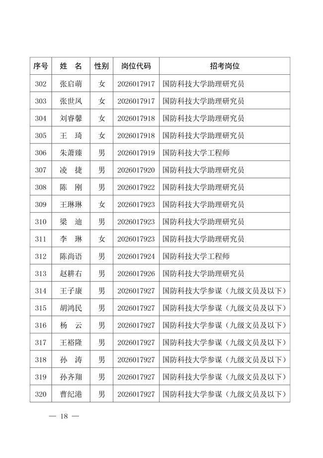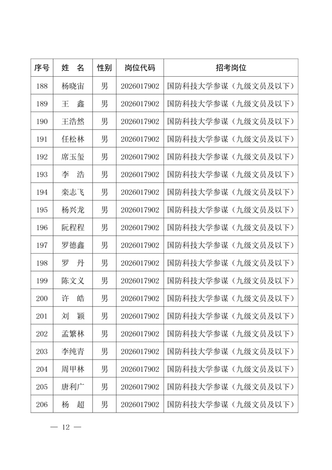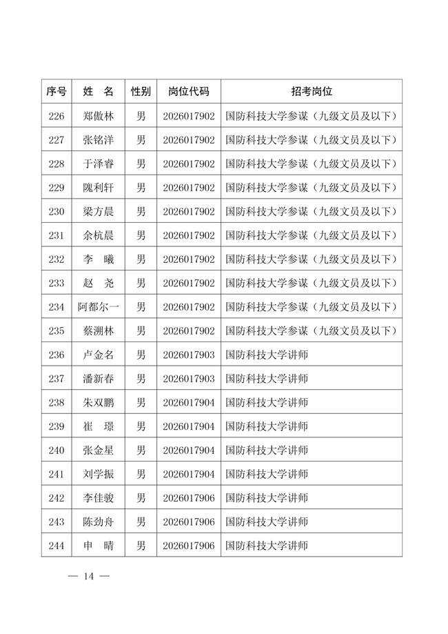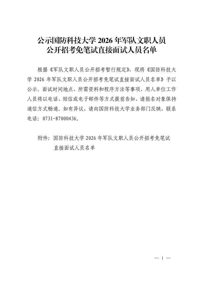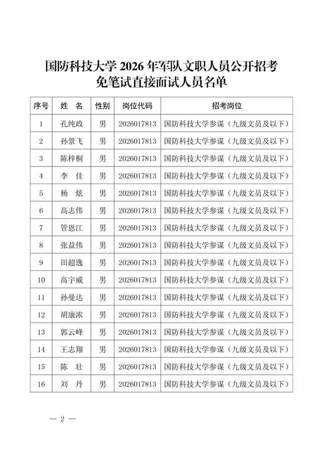 原文標題:公示國防科技大學(xué)2026年軍隊文職人員公開招考免筆試直接面試人員名單
