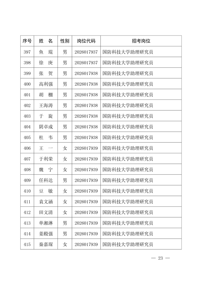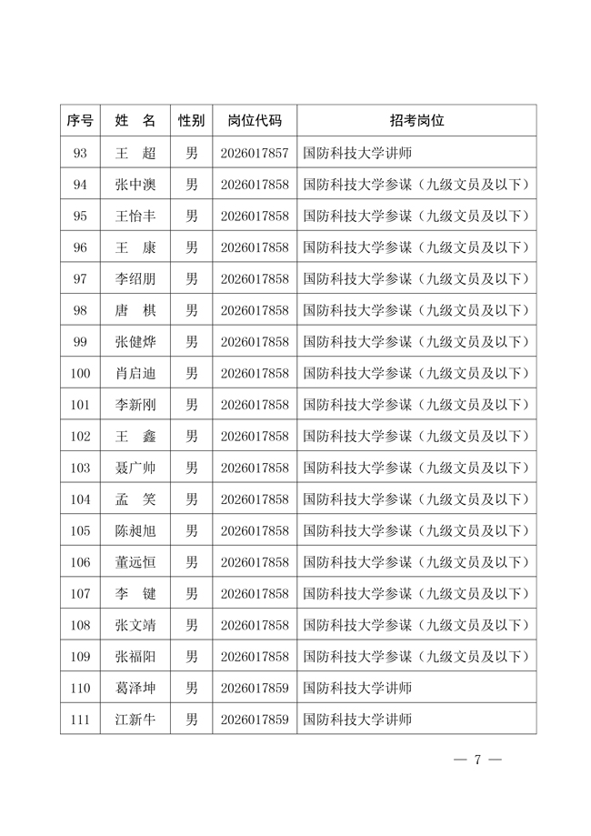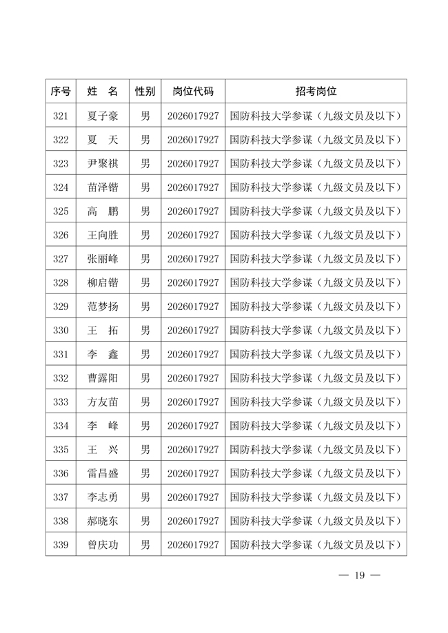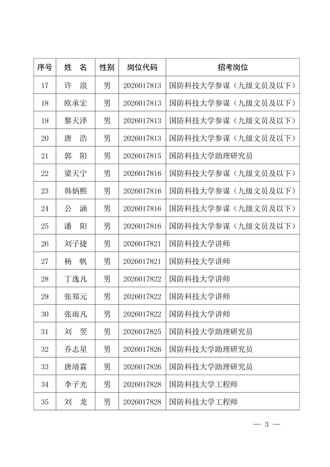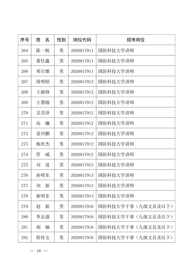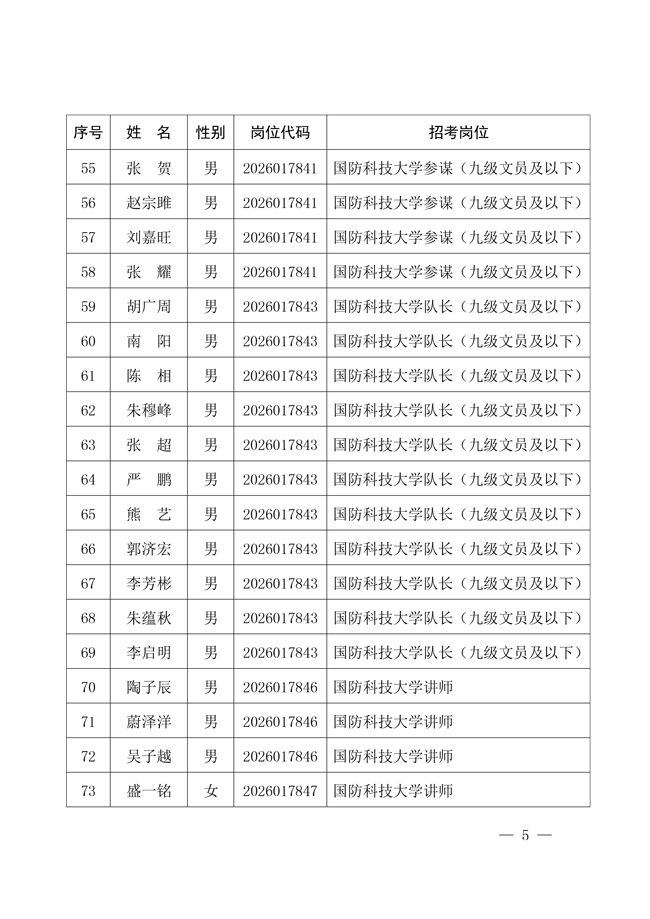 原文標題:公示國防科技大學(xué)2026年軍隊文職人員公開招考免筆試直接面試人員名單