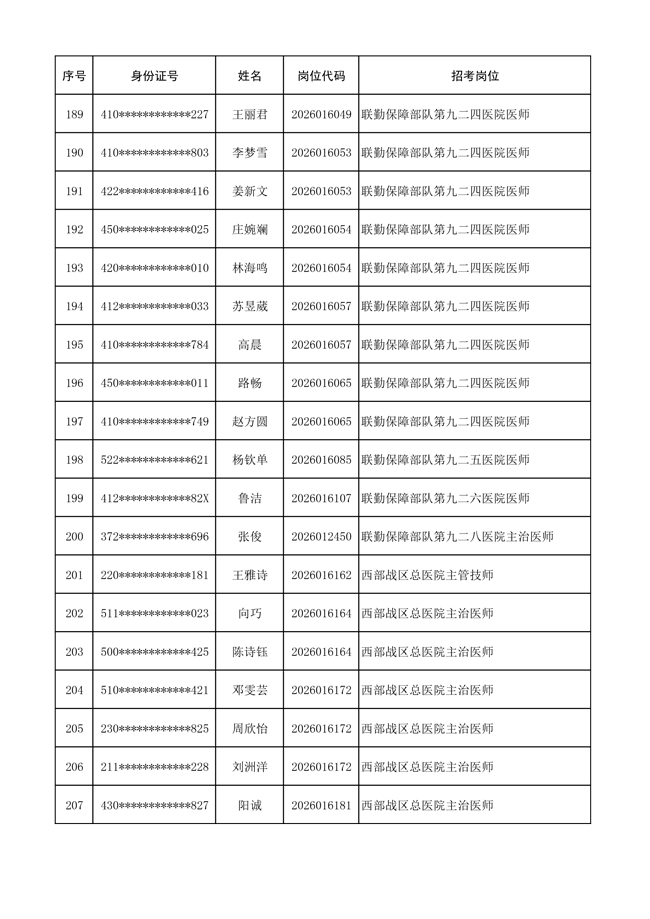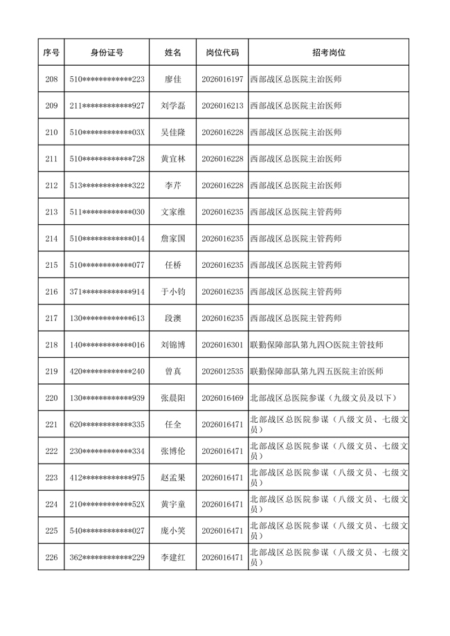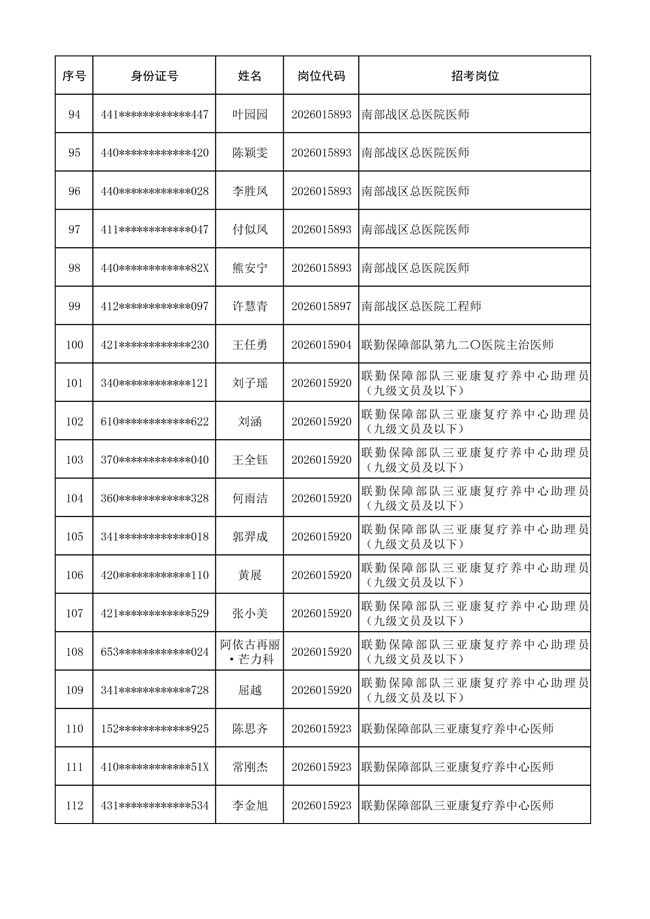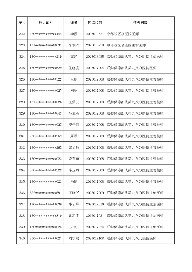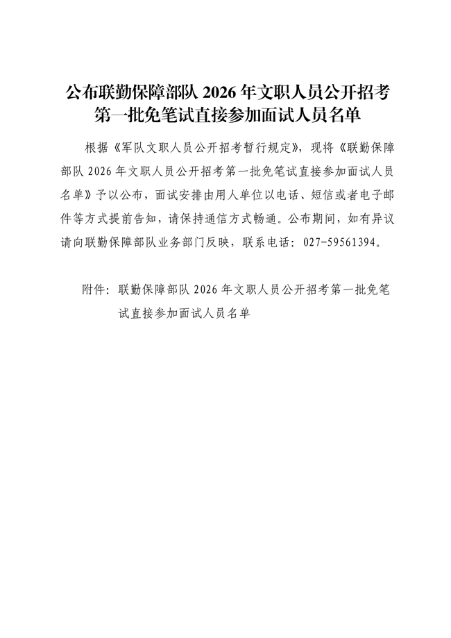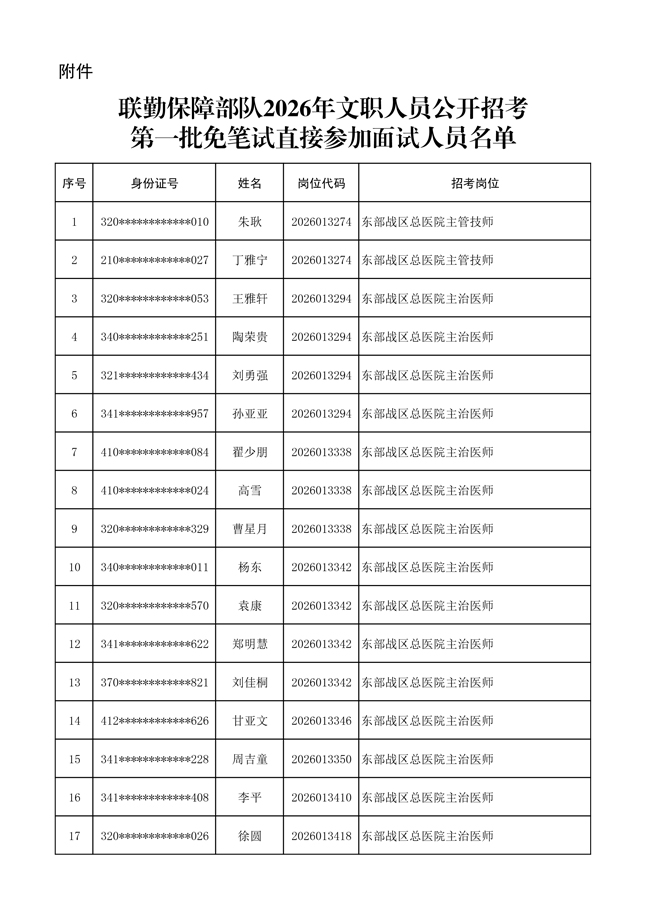 原文標(biāo)題:公布聯(lián)勤保障部隊(duì)2026年文職人員公開(kāi)招考 第一批免筆試直接參加面試人員名單