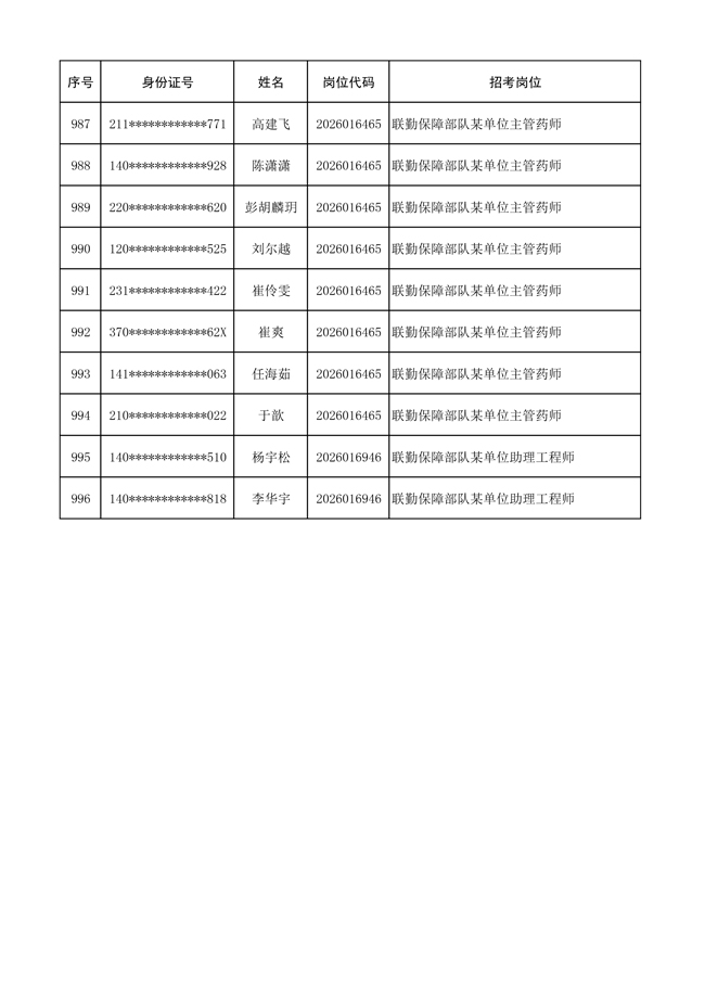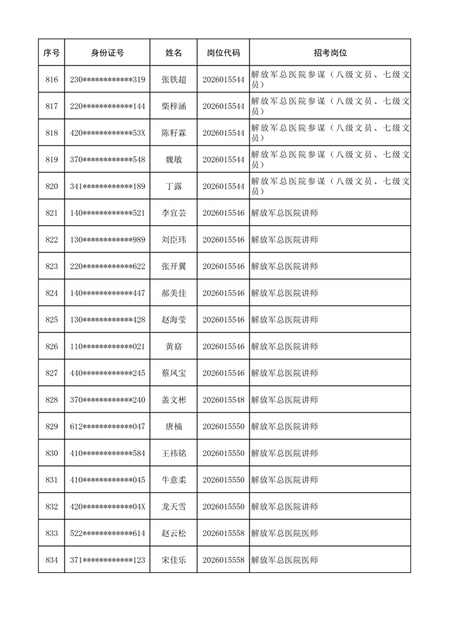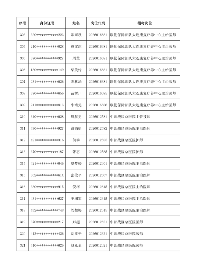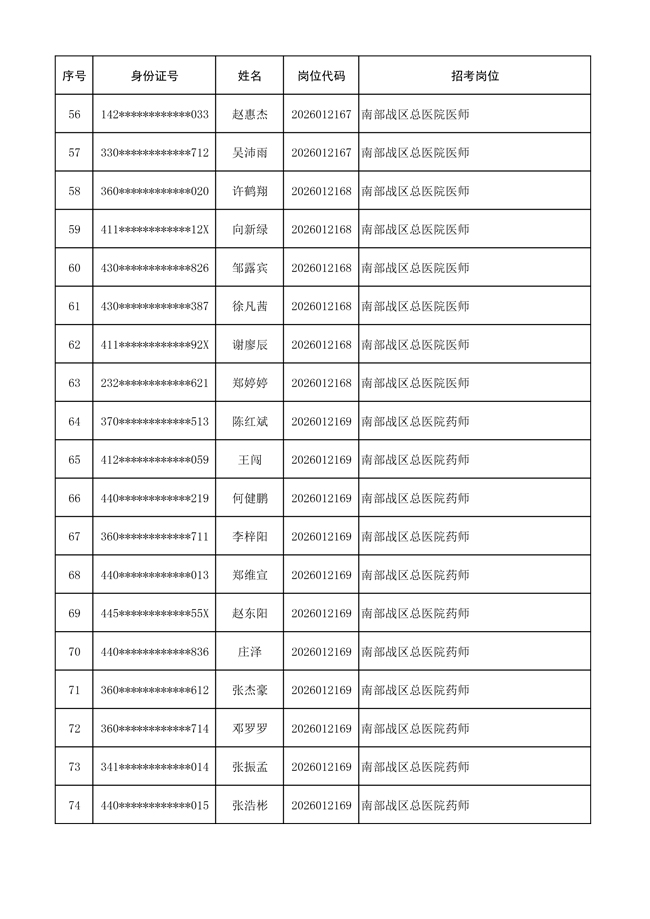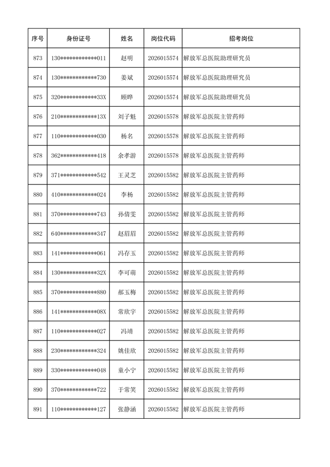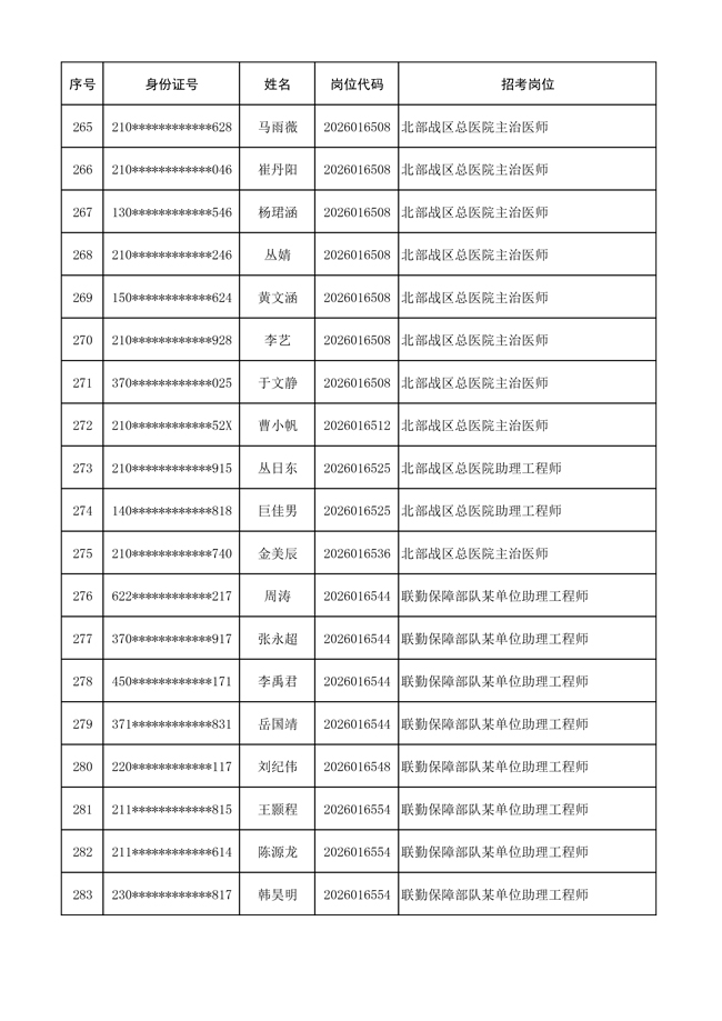 原文標(biāo)題:公布聯(lián)勤保障部隊(duì)2026年文職人員公開(kāi)招考 第一批免筆試直接參加面試人員名單