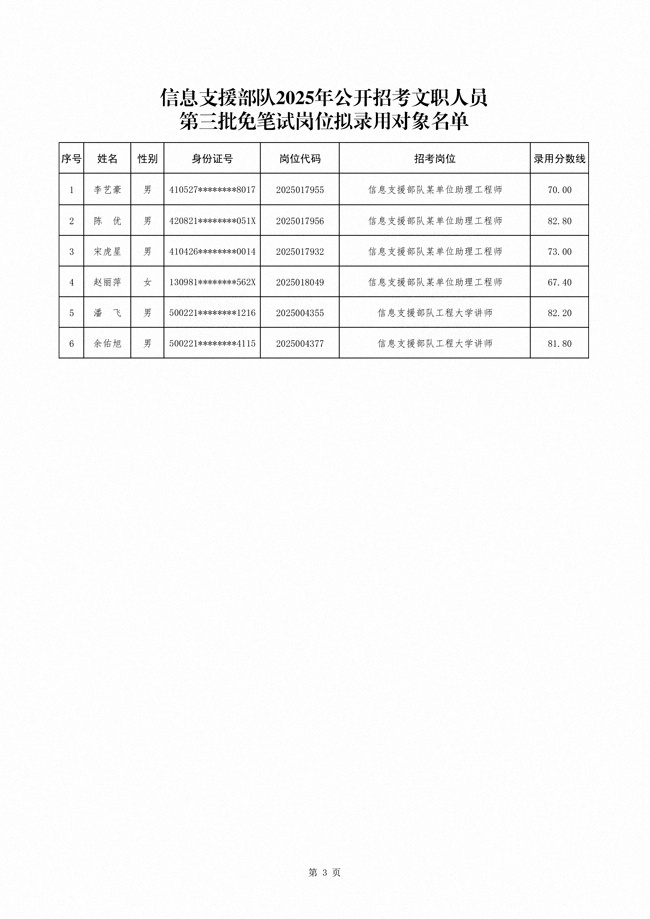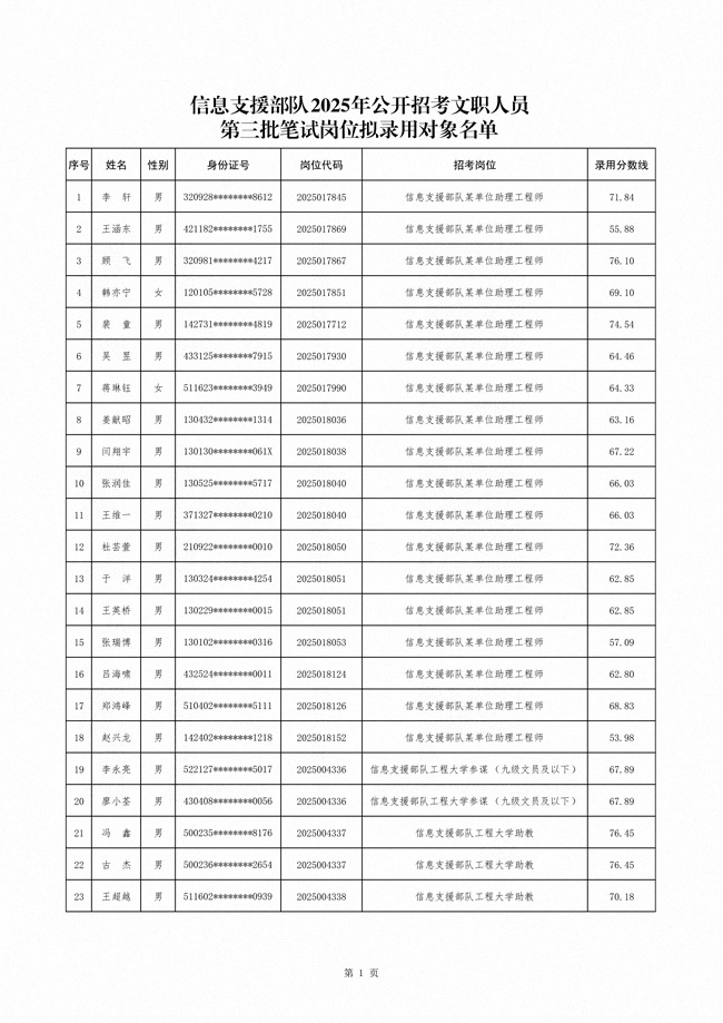 原文標(biāo)題:公示信息支援部隊2025年公開招考 文職人員第三批擬錄用對象名單
