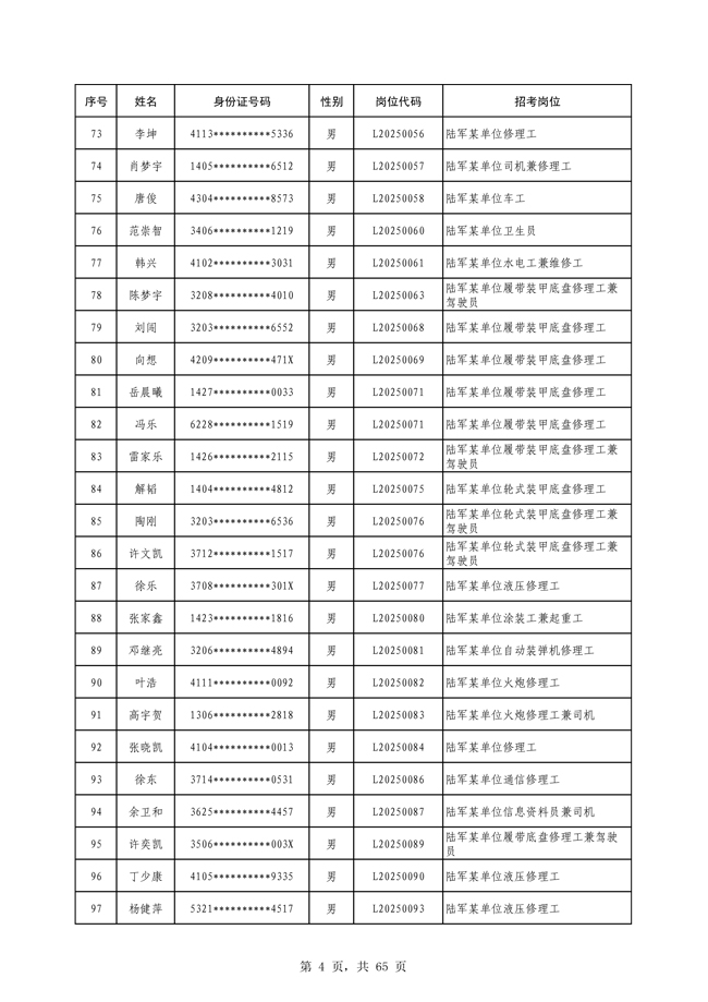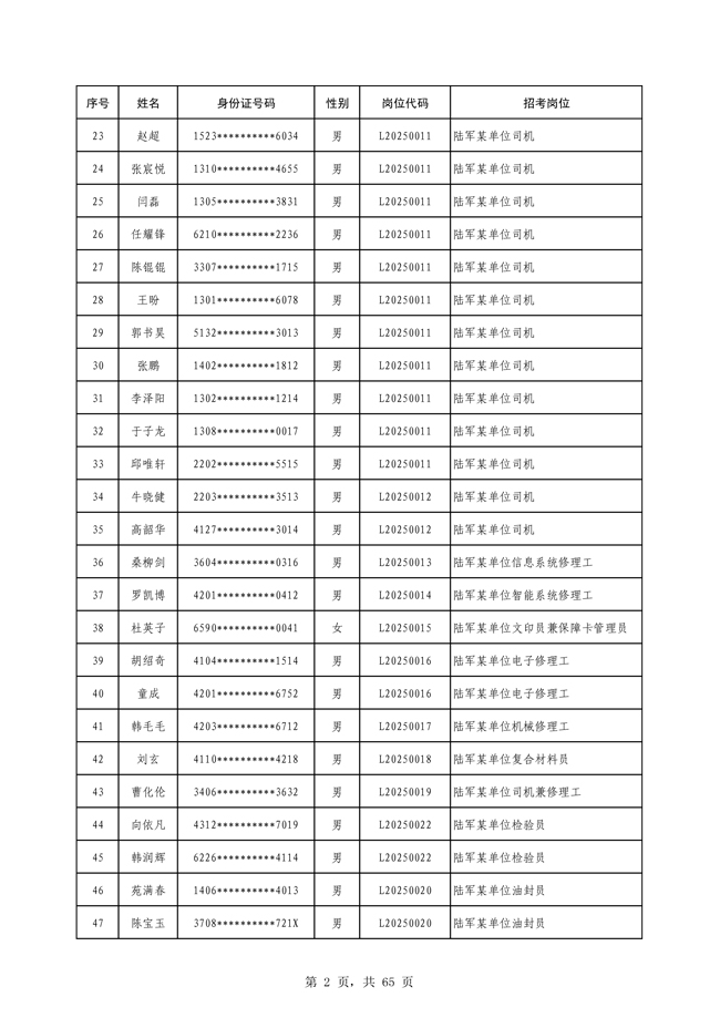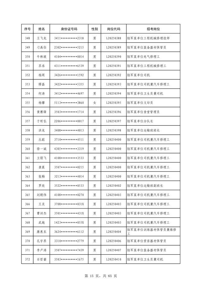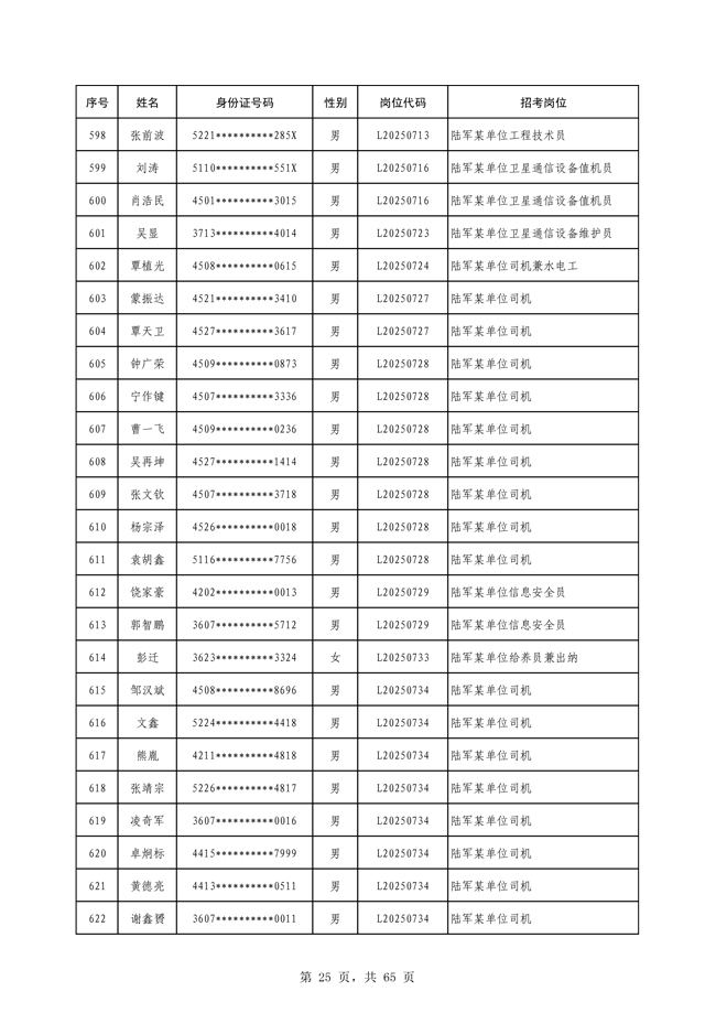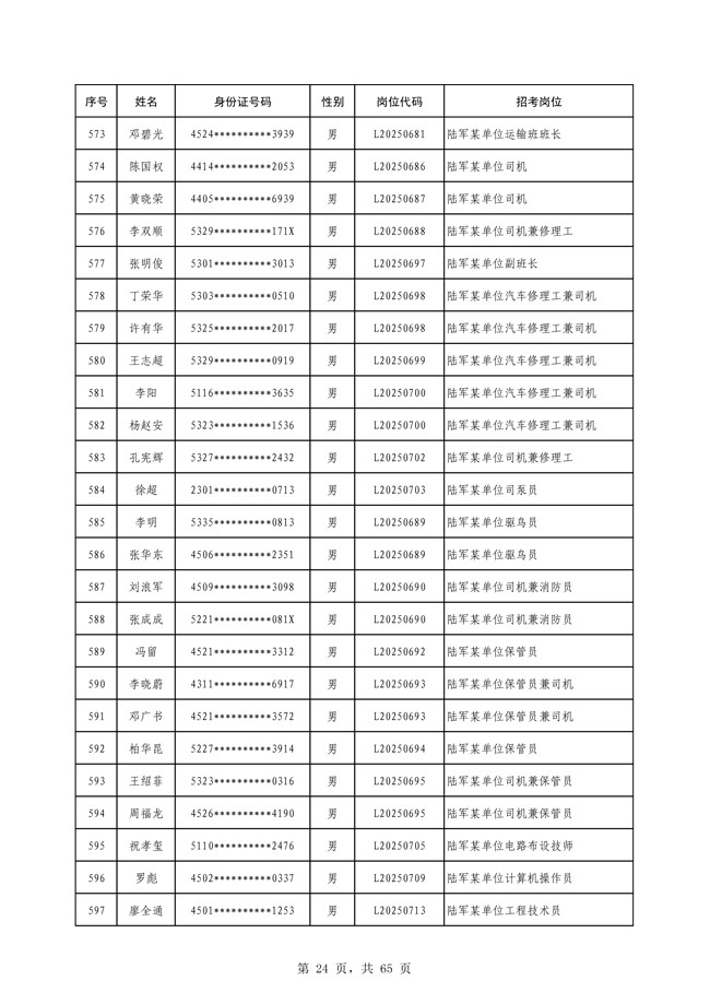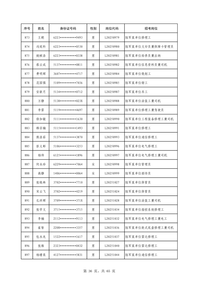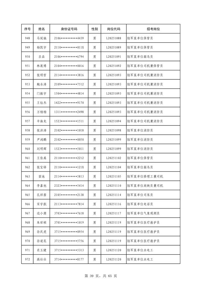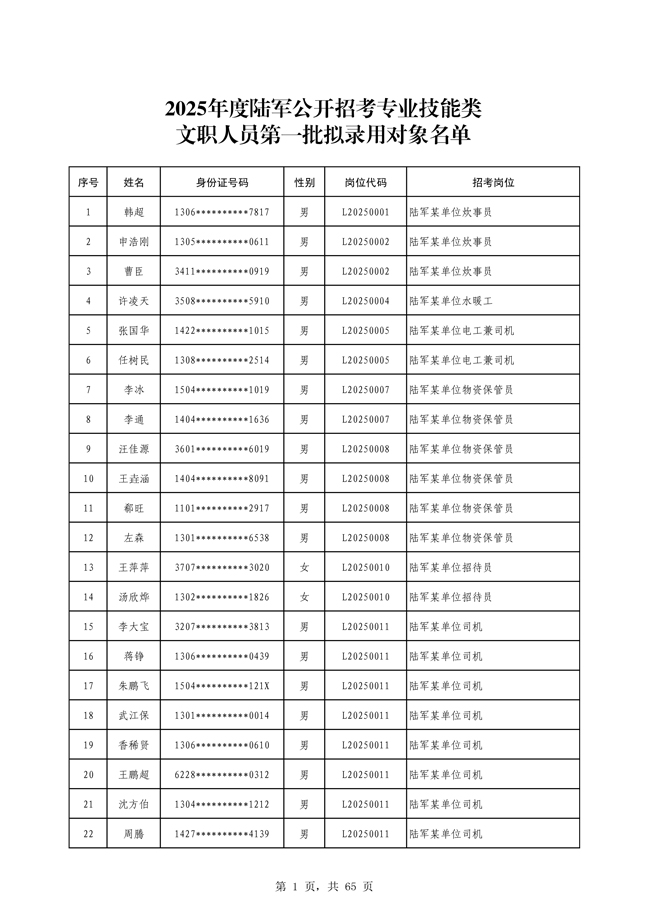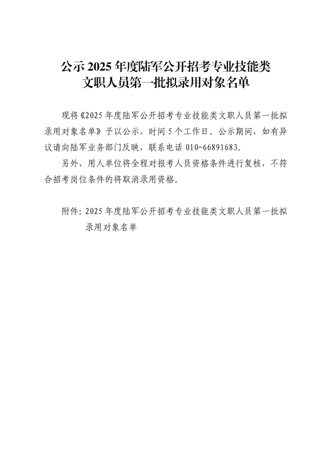 原文標題:公示2025年度陸軍公開招考專業(yè)技能類文職人員第一批擬錄用對象名單