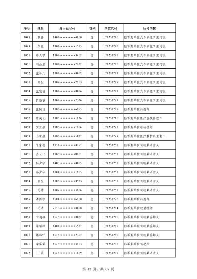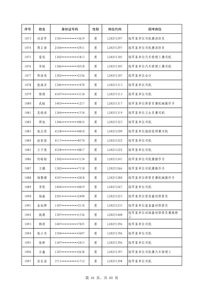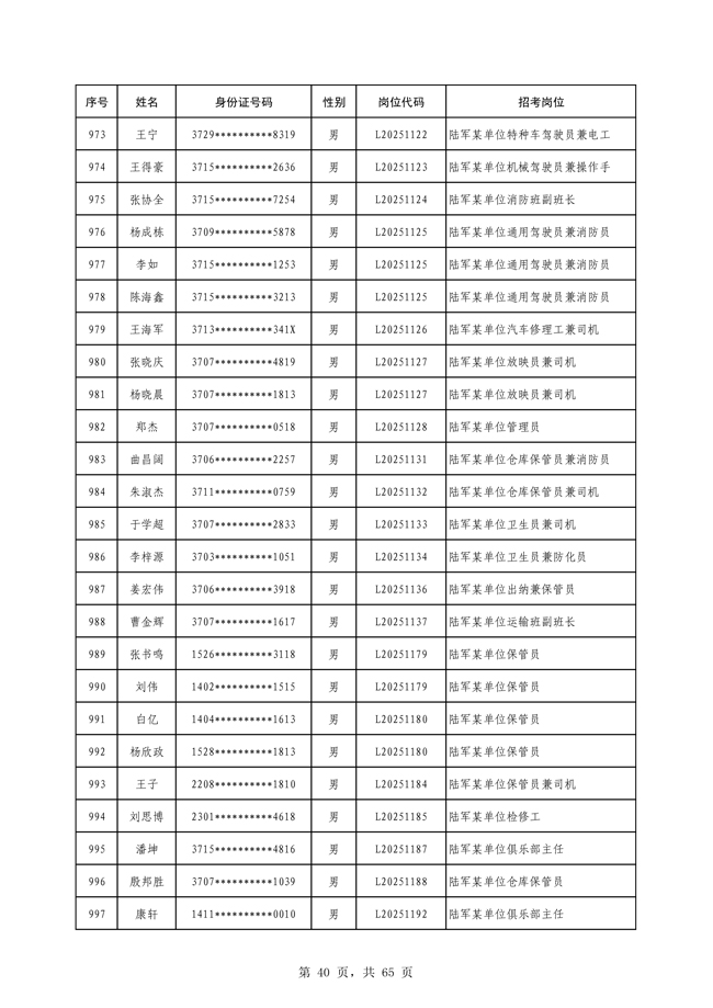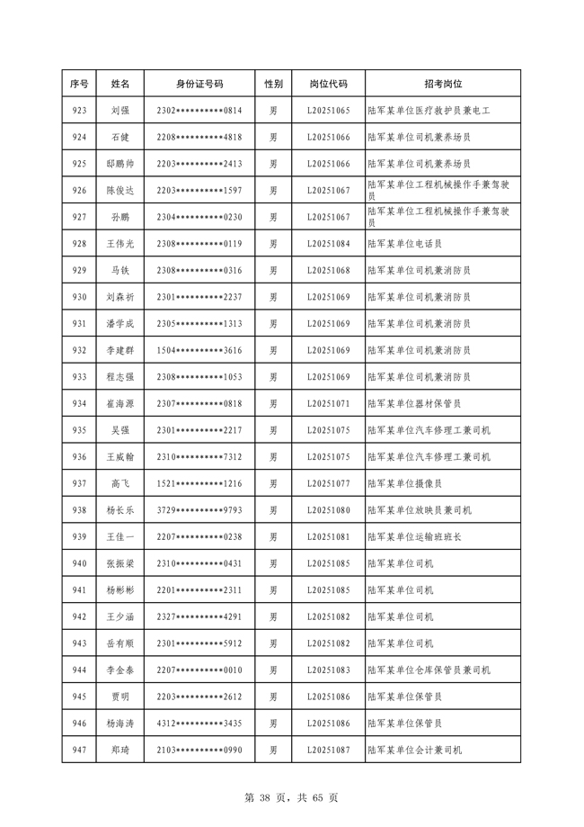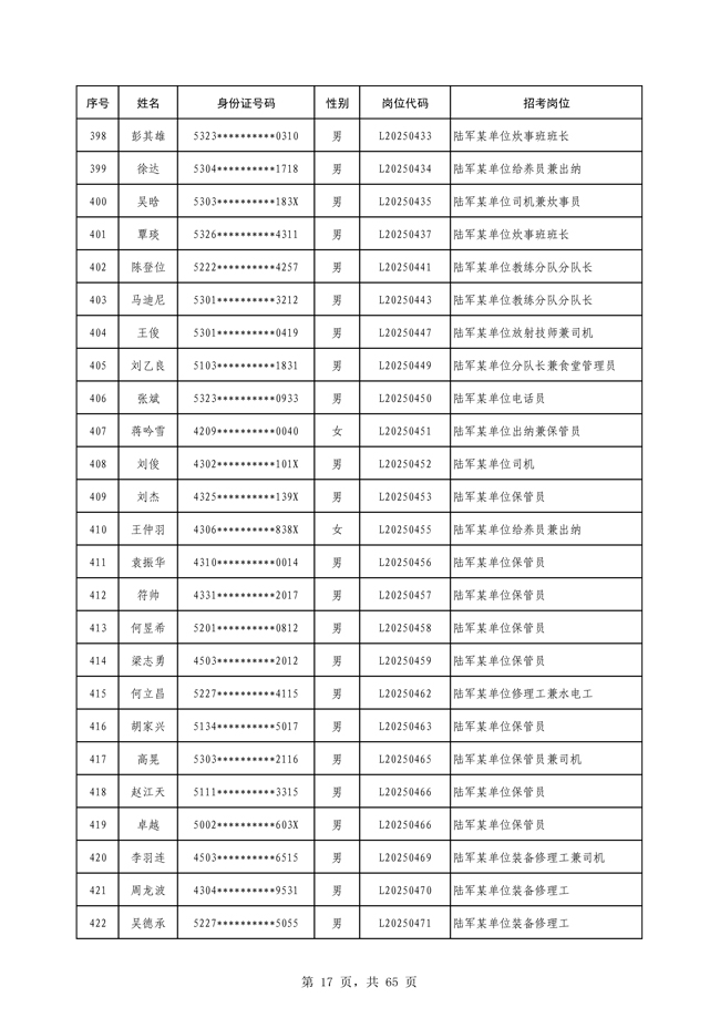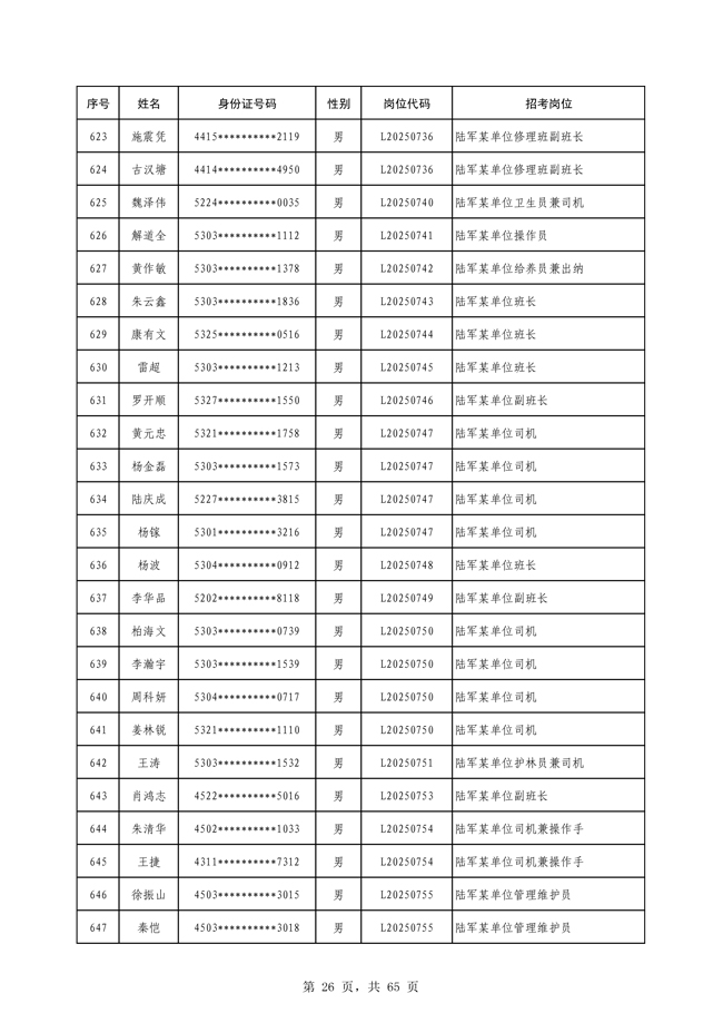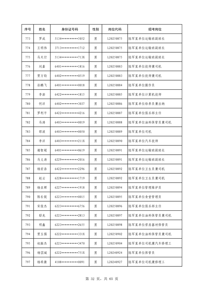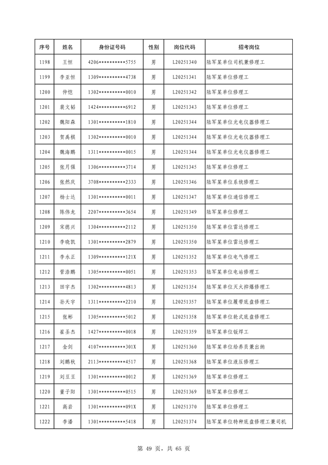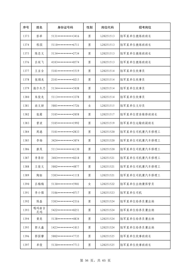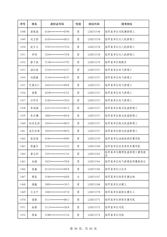 原文標題:公示2025年度陸軍公開招考專業(yè)技能類文職人員第一批擬錄用對象名單