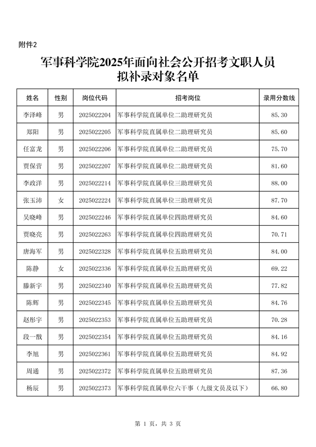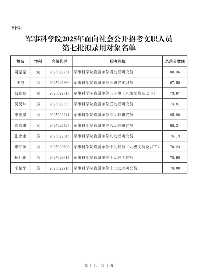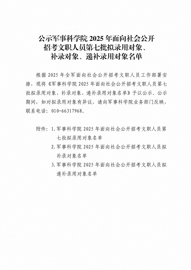 原文標題:公示軍事科學院2025年面向社會公開招考文職人員 第七批擬錄用對象、補錄對象、遞補錄用對象名單